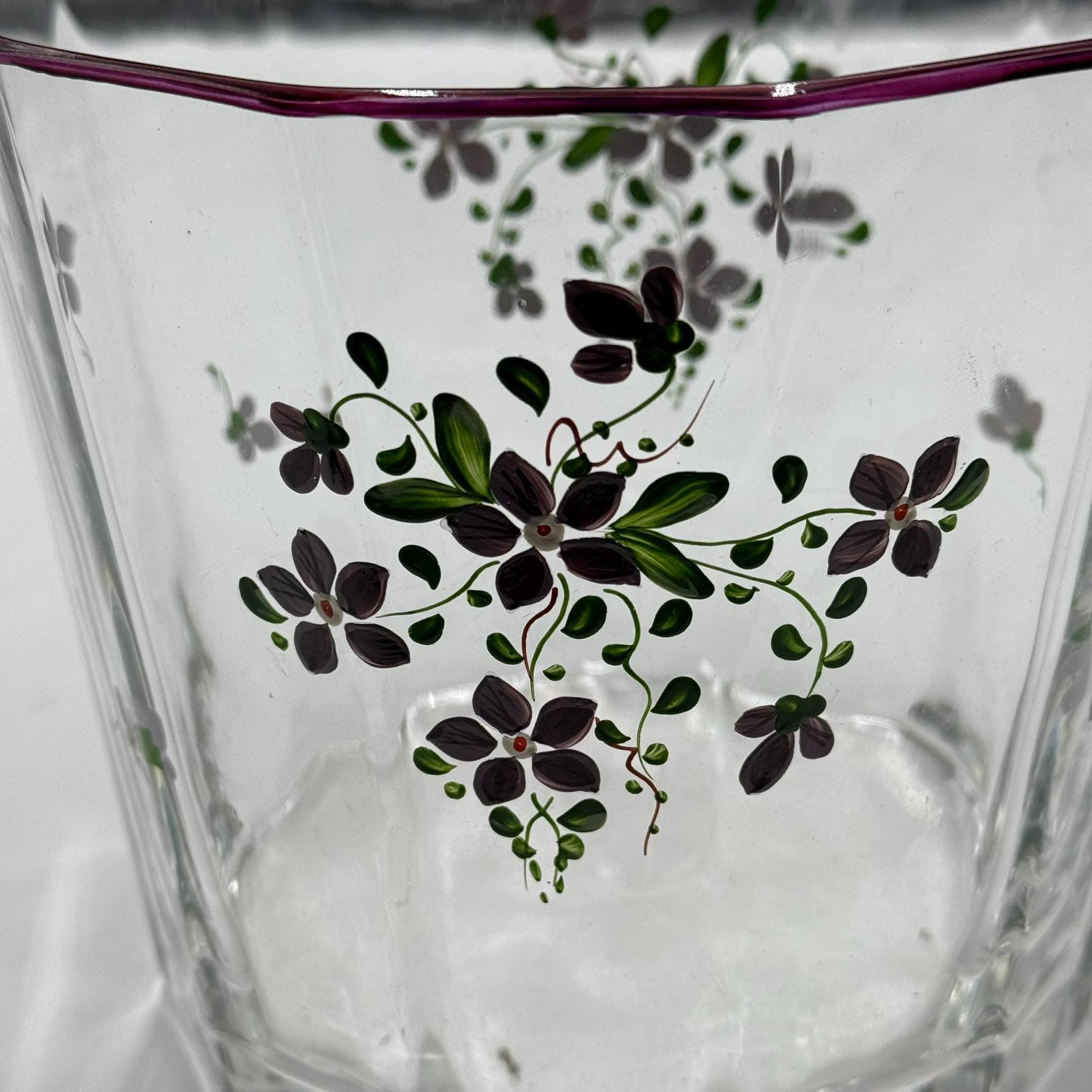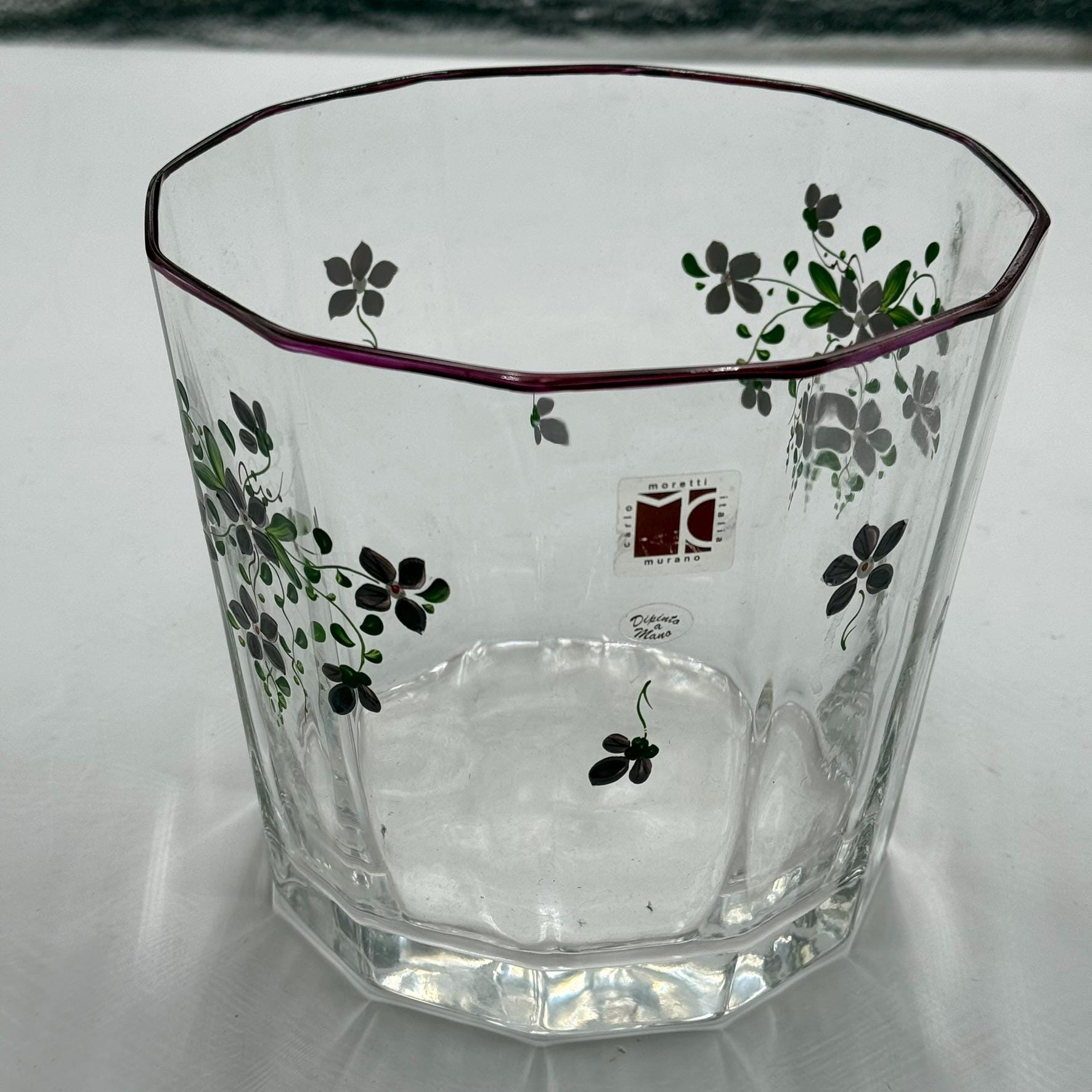 Murano glass vase Vetreria artistica Moretti hand painted floral decoration90'smeasurements in photo