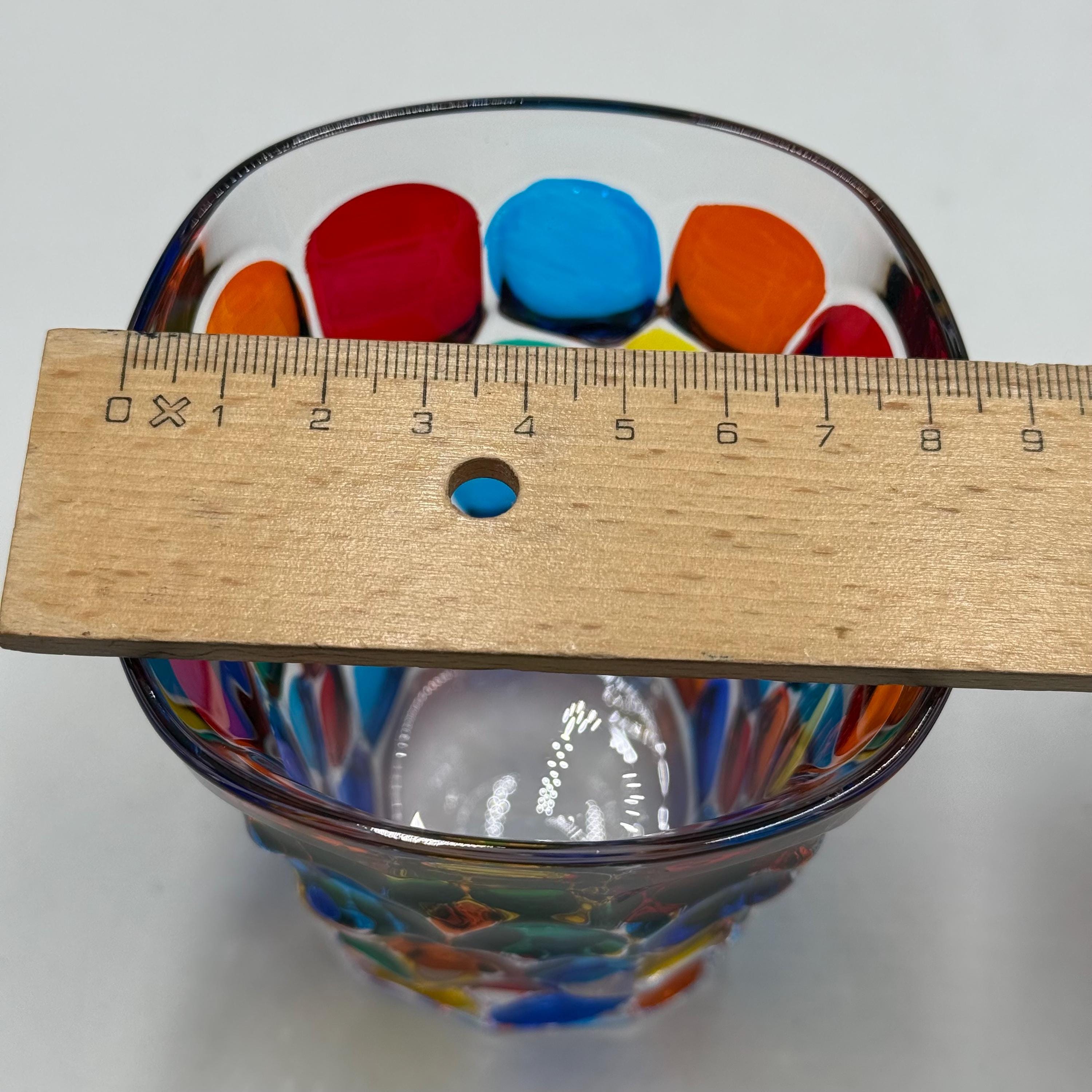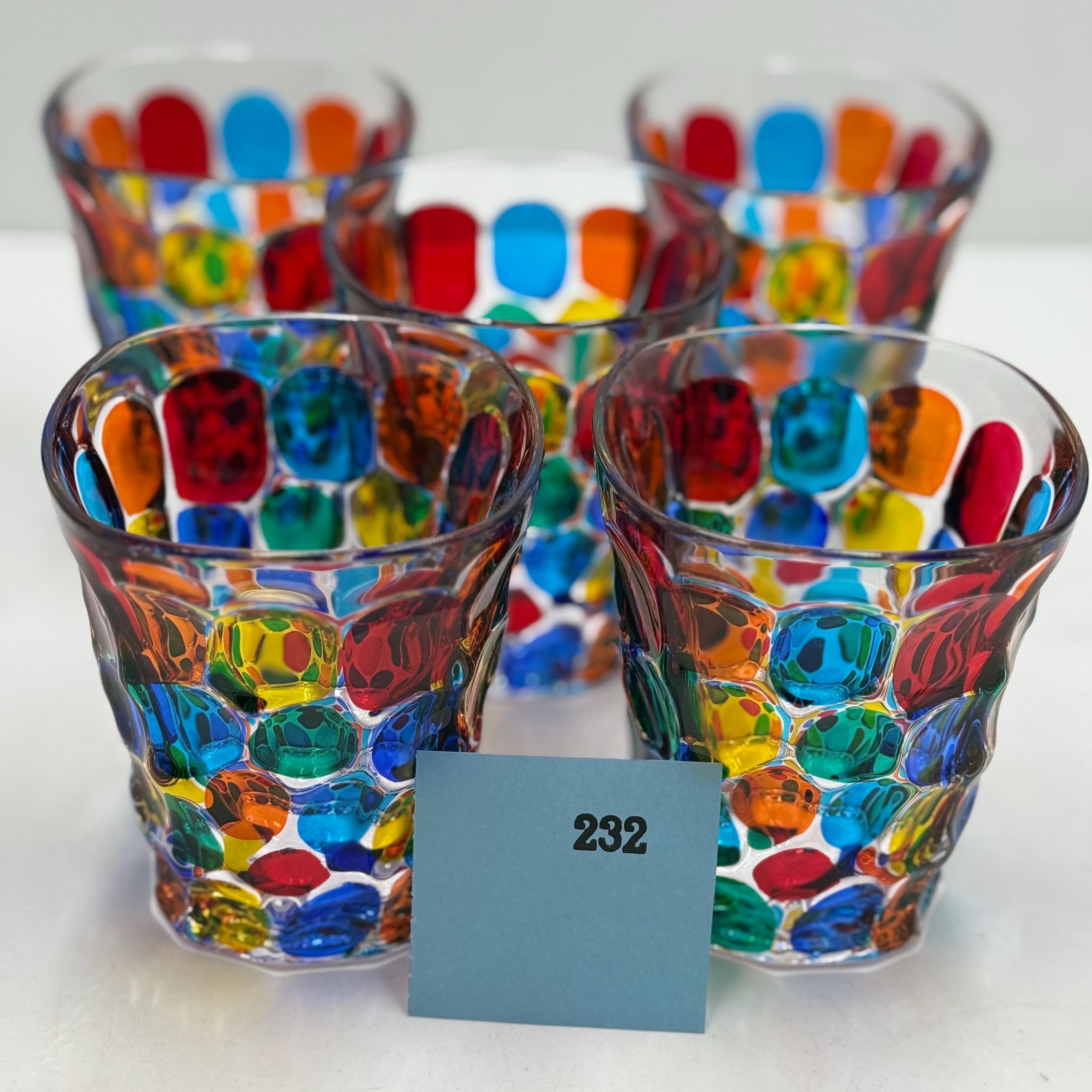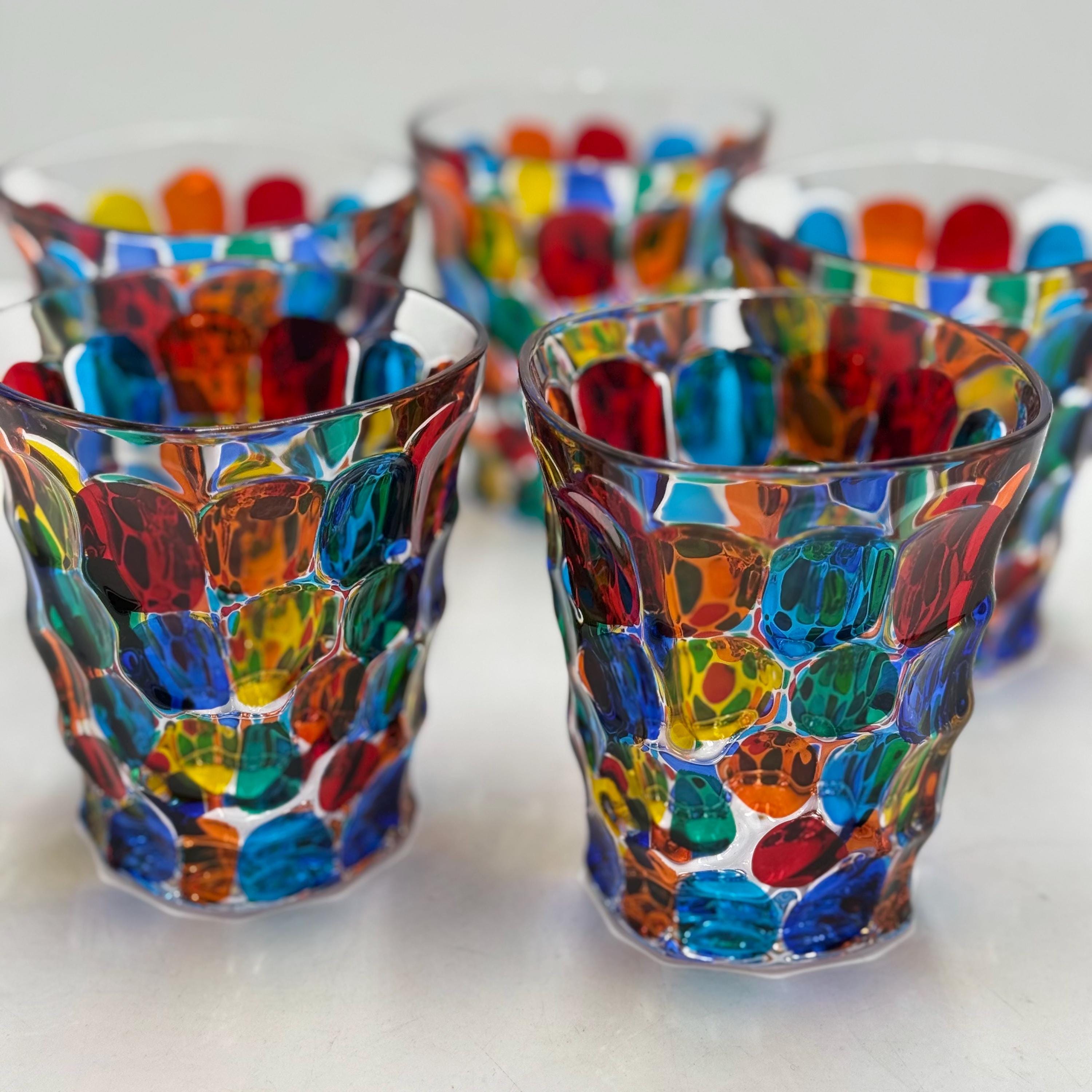 Murano decorations 5 glasses decorated by the Zecchin glassworks according to the ancient technique of the Murano decorators Italian glass decoration various colors.