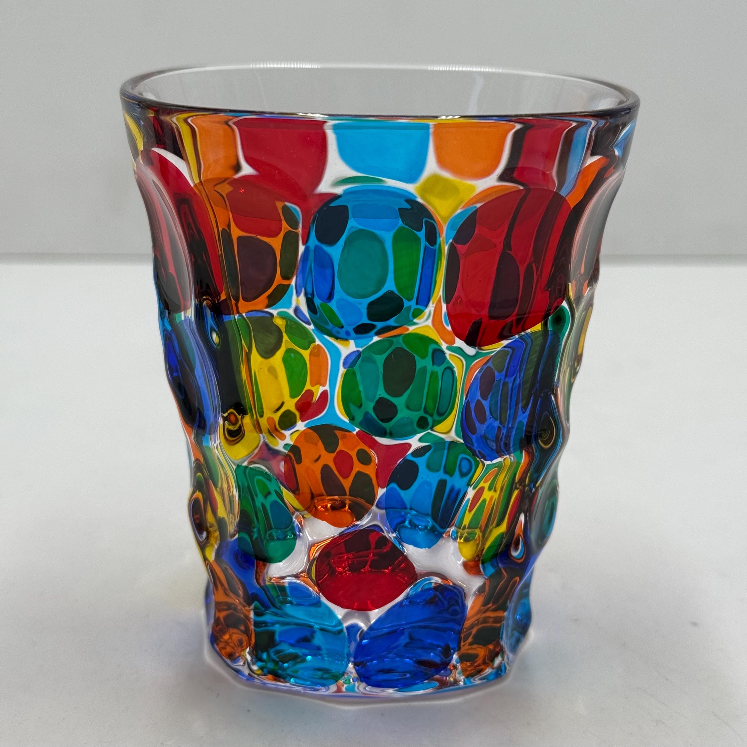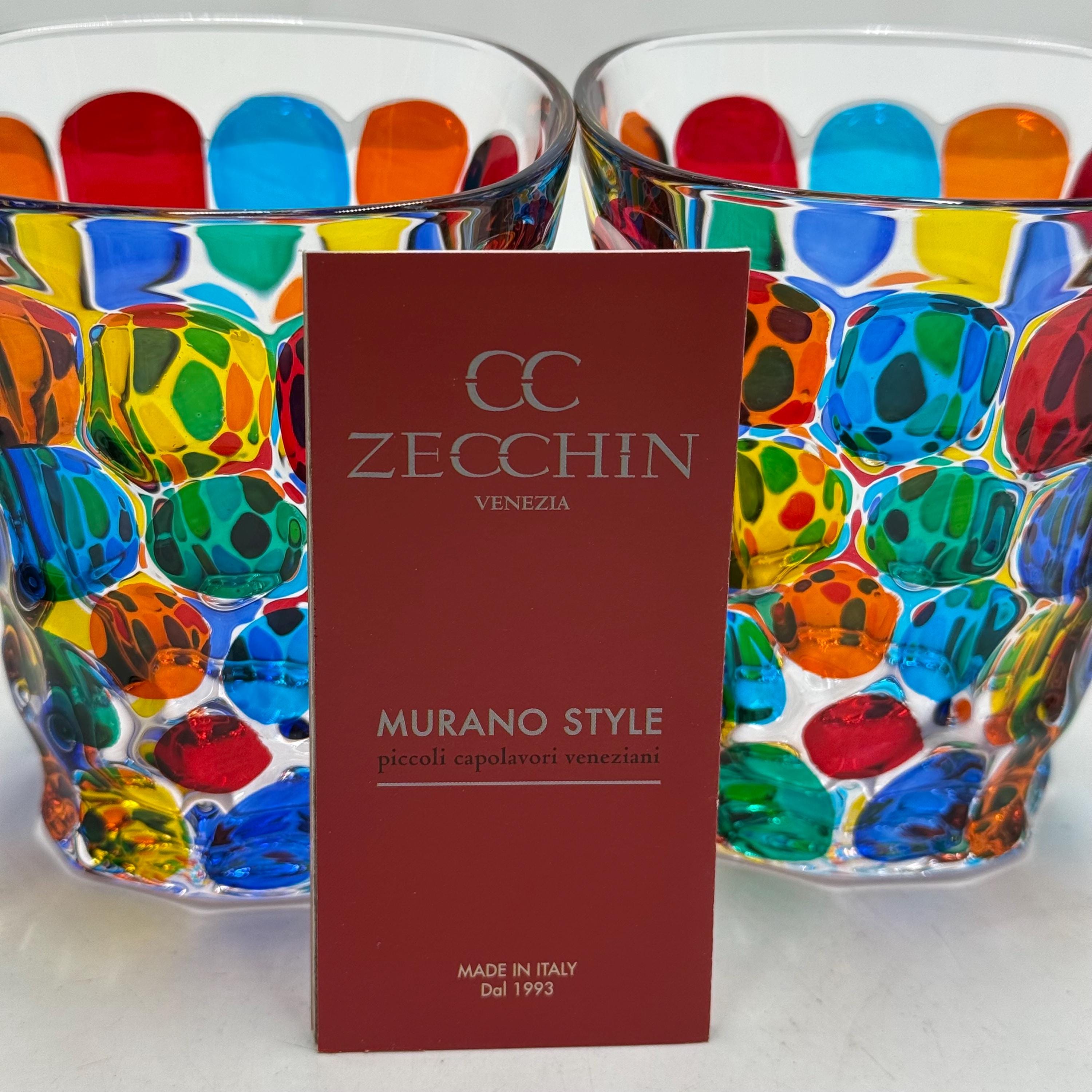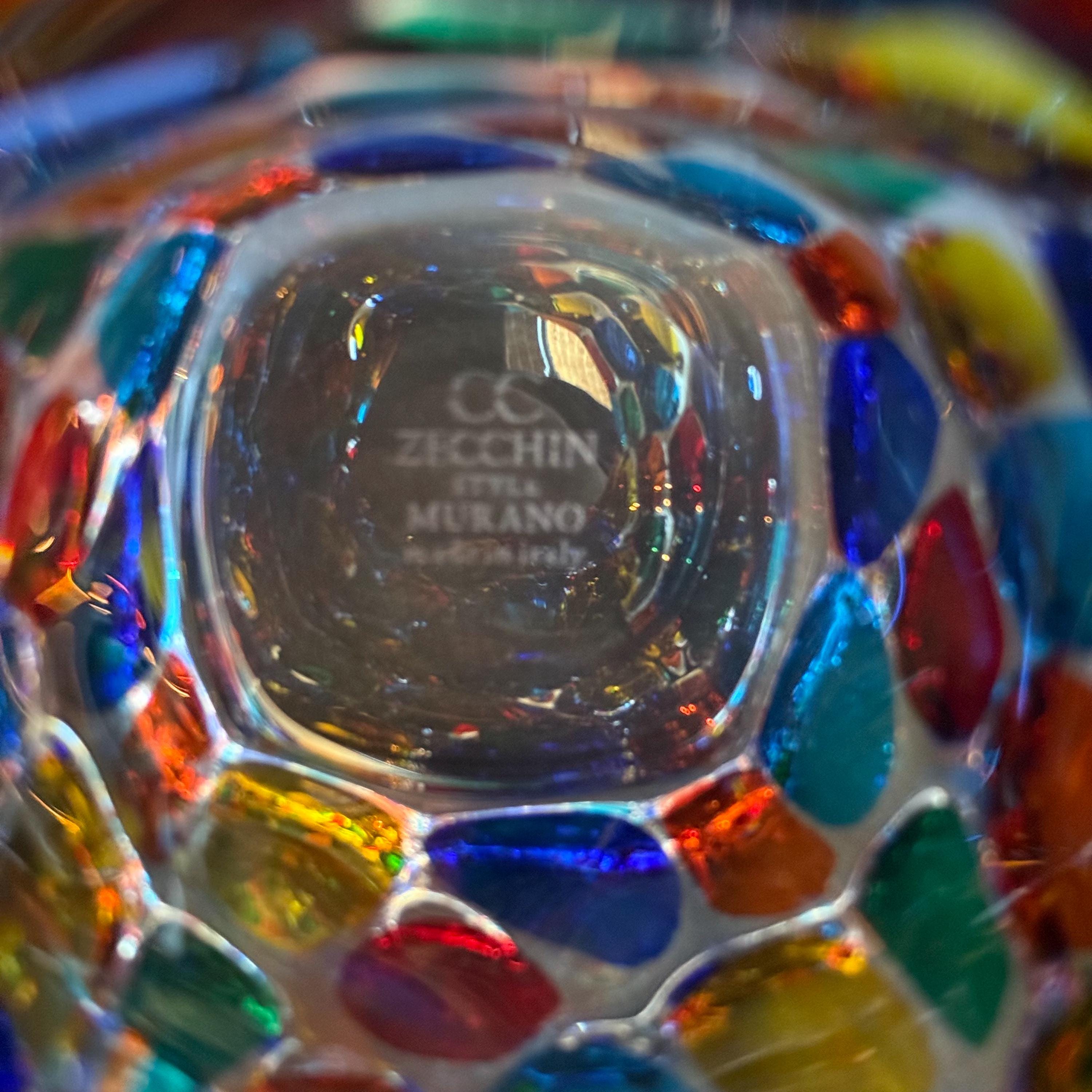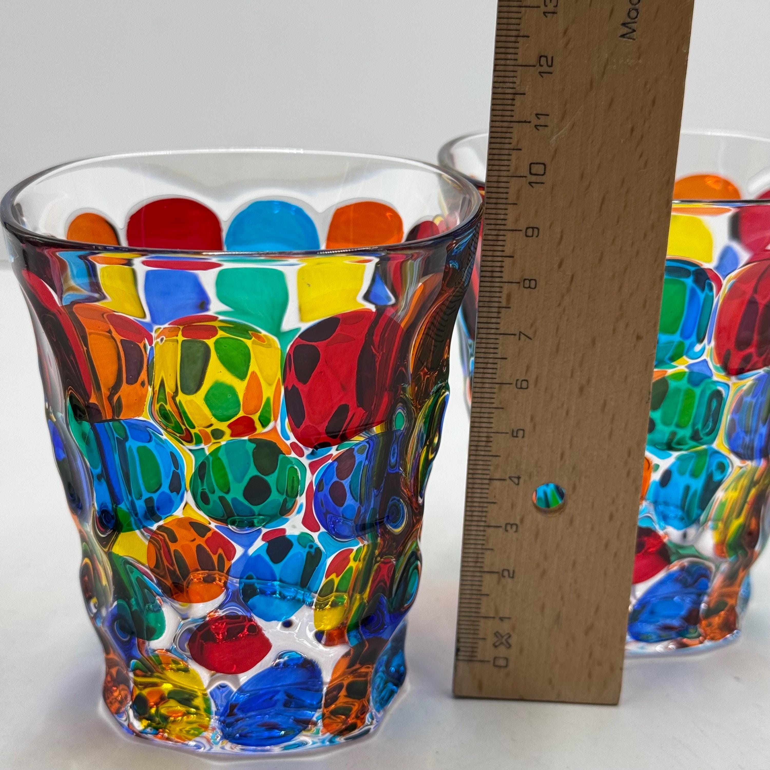 Murano decorations 5 glasses decorated by the Zecchin glassworks according to the ancient technique of the Murano decorators Italian glass decoration various colors.