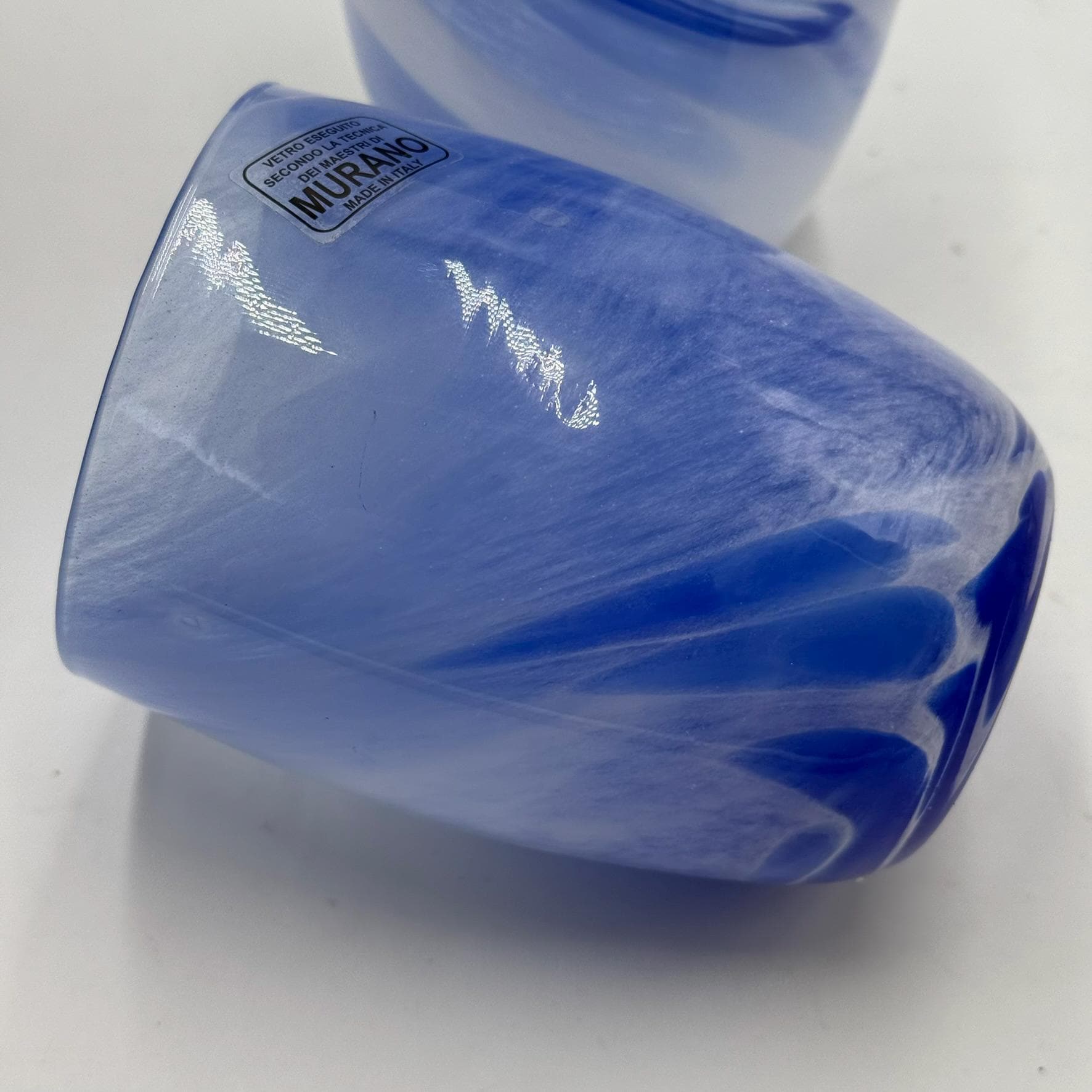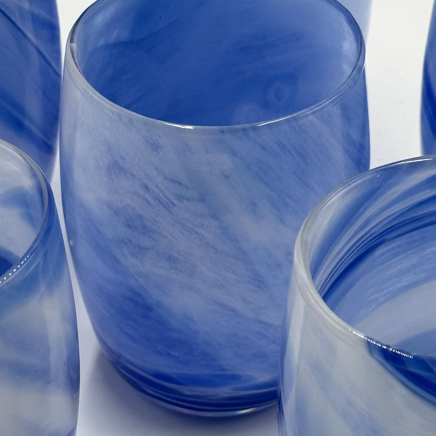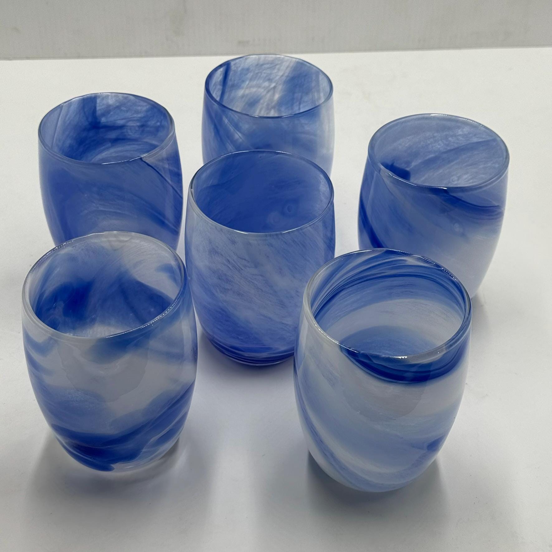 Set of 6 "Marble Baril" glasses in blue Murano glassmeasurements and designer in photo