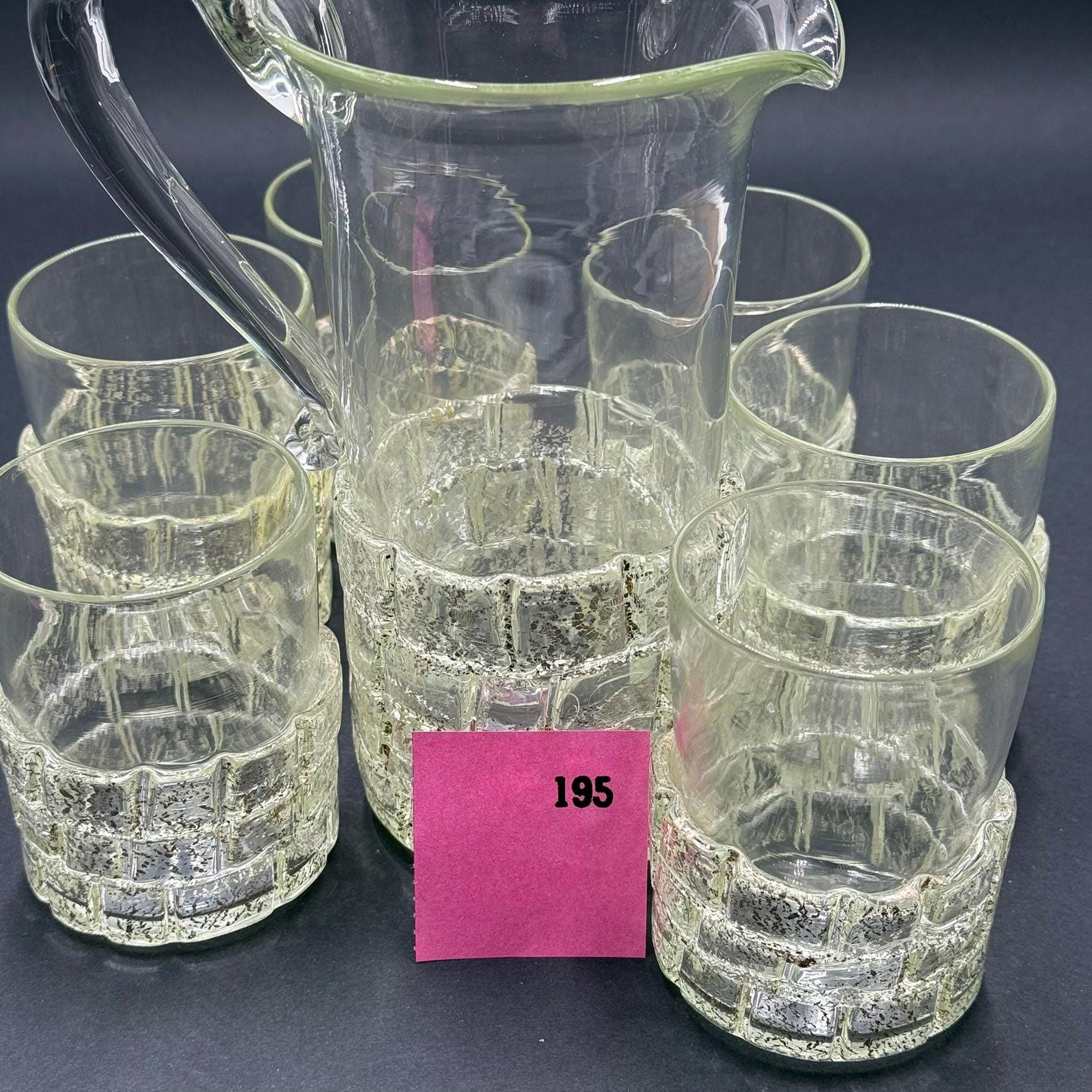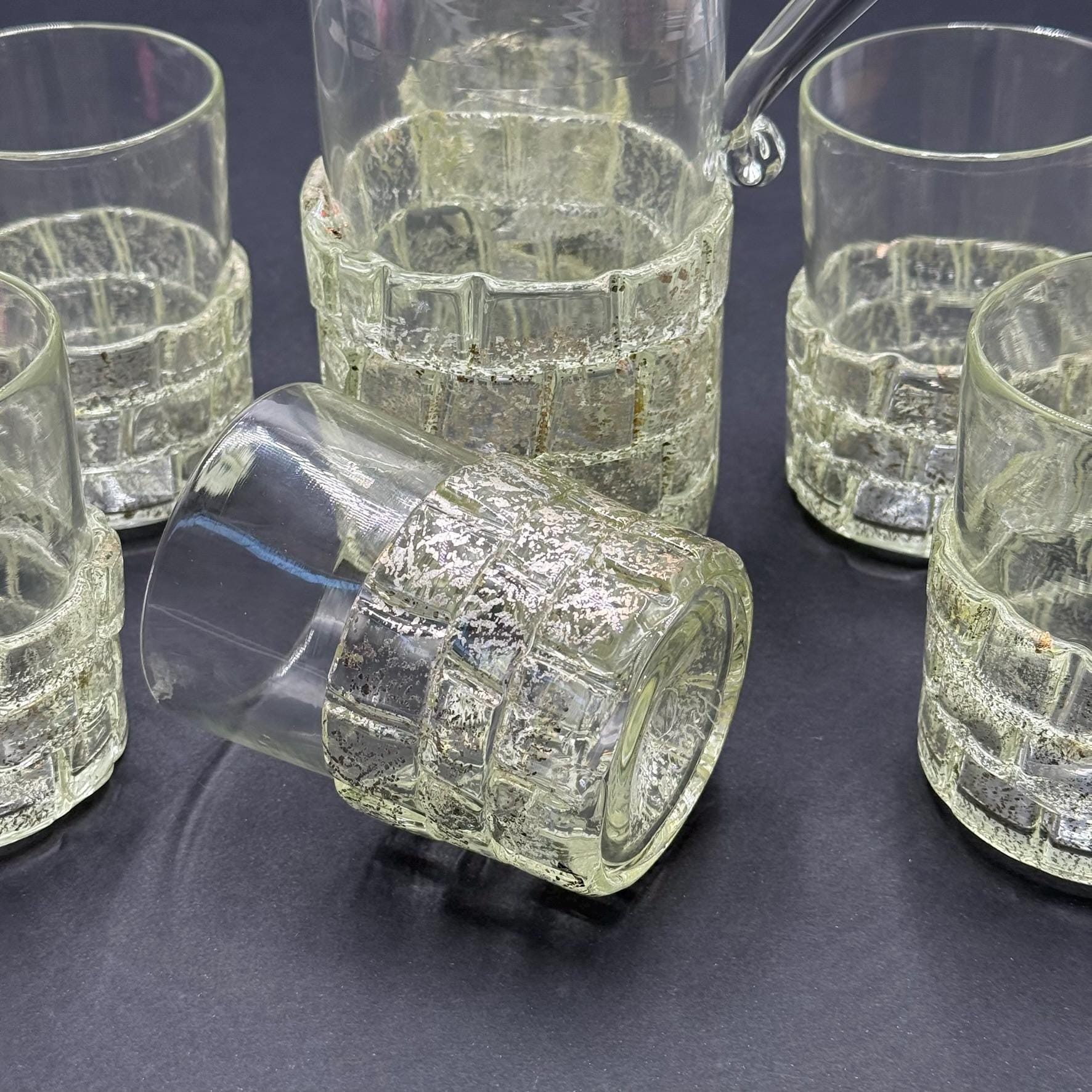 Murano glass carafe and 6 glasses blown and signed by master Daniele Biasin 925 silver leaf.measurements and designer in photos