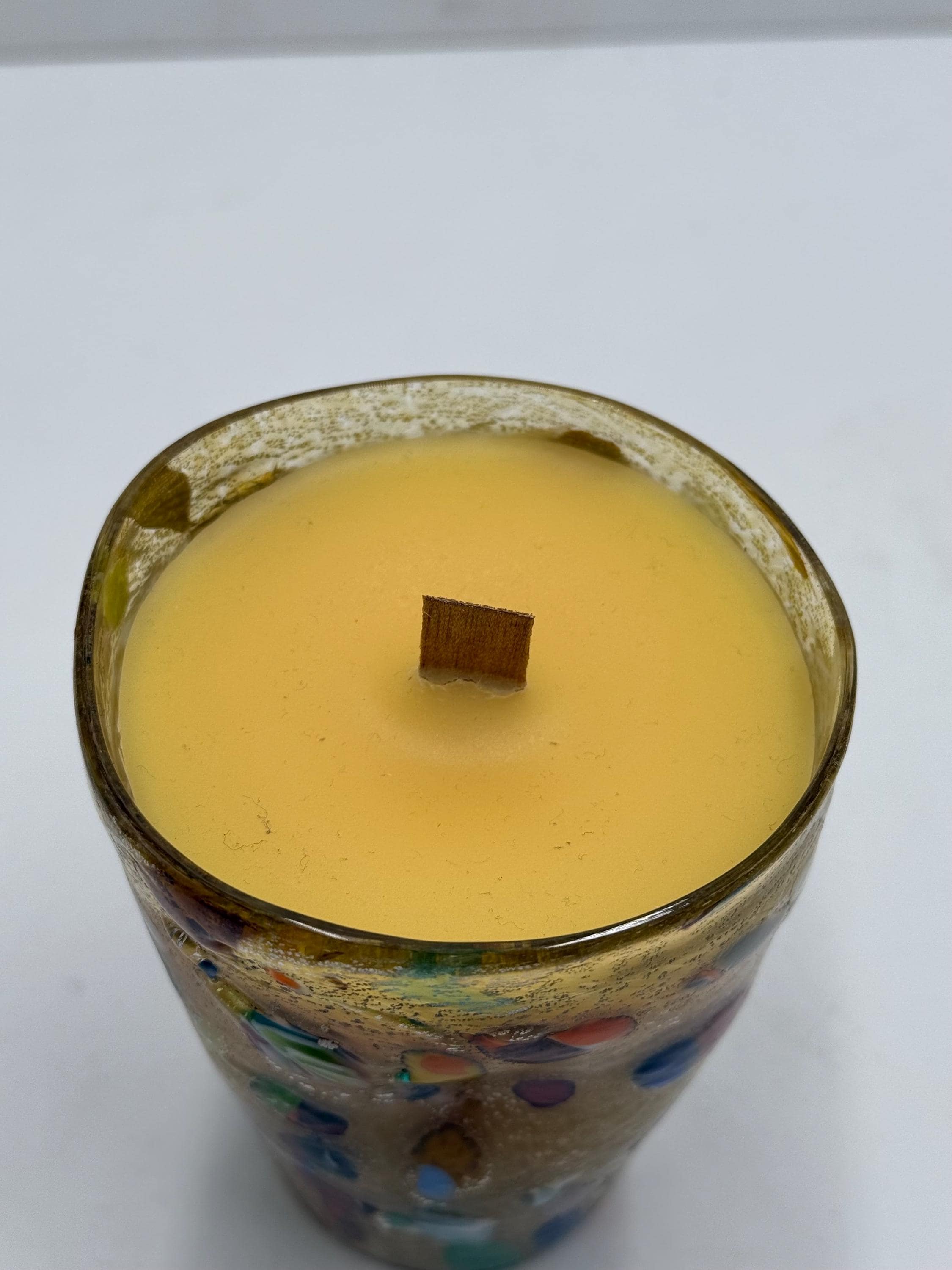 vanilla scented candle colored soy wax-Artistic blown glass in Murano glass Vetreria CC ZecchinMeasurements and details of the glass in the photo