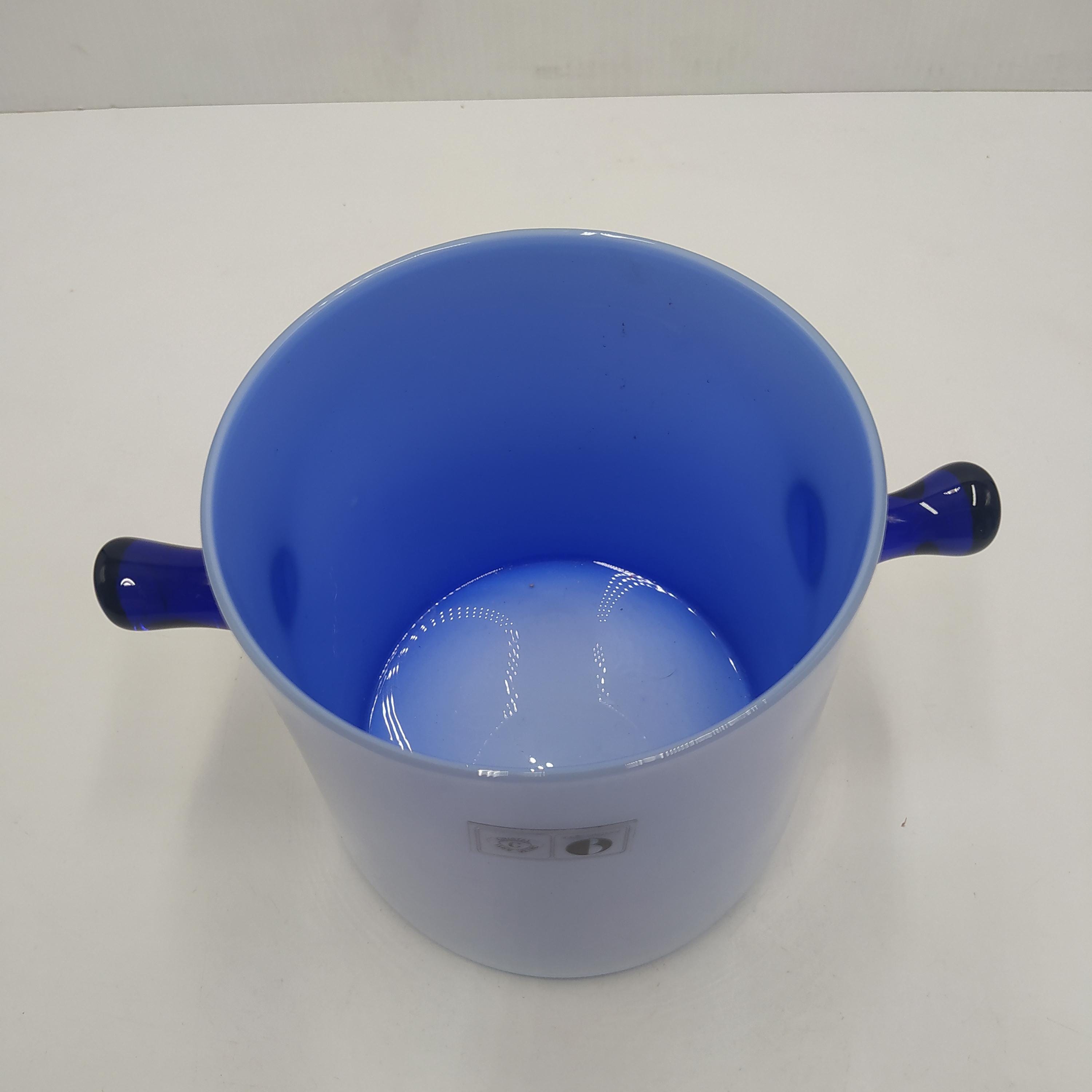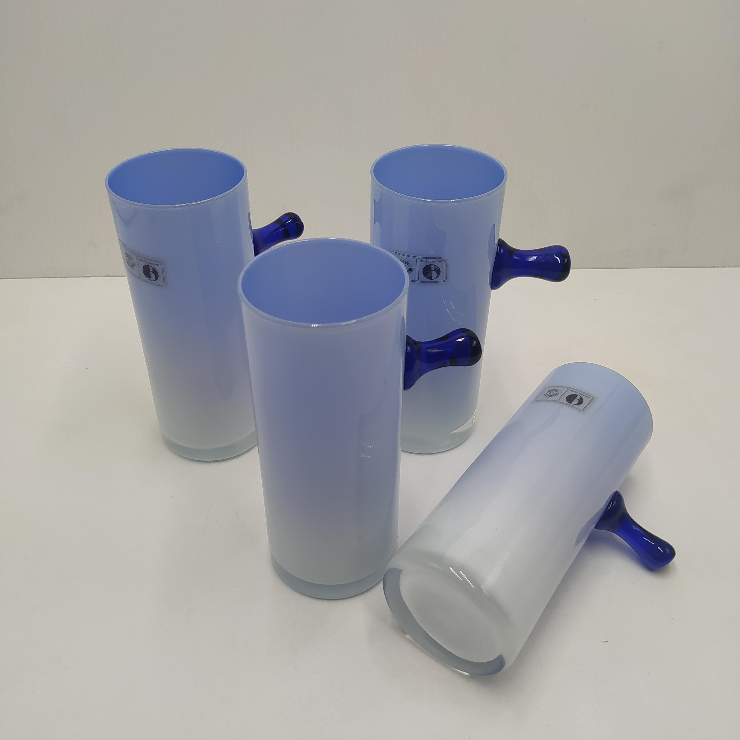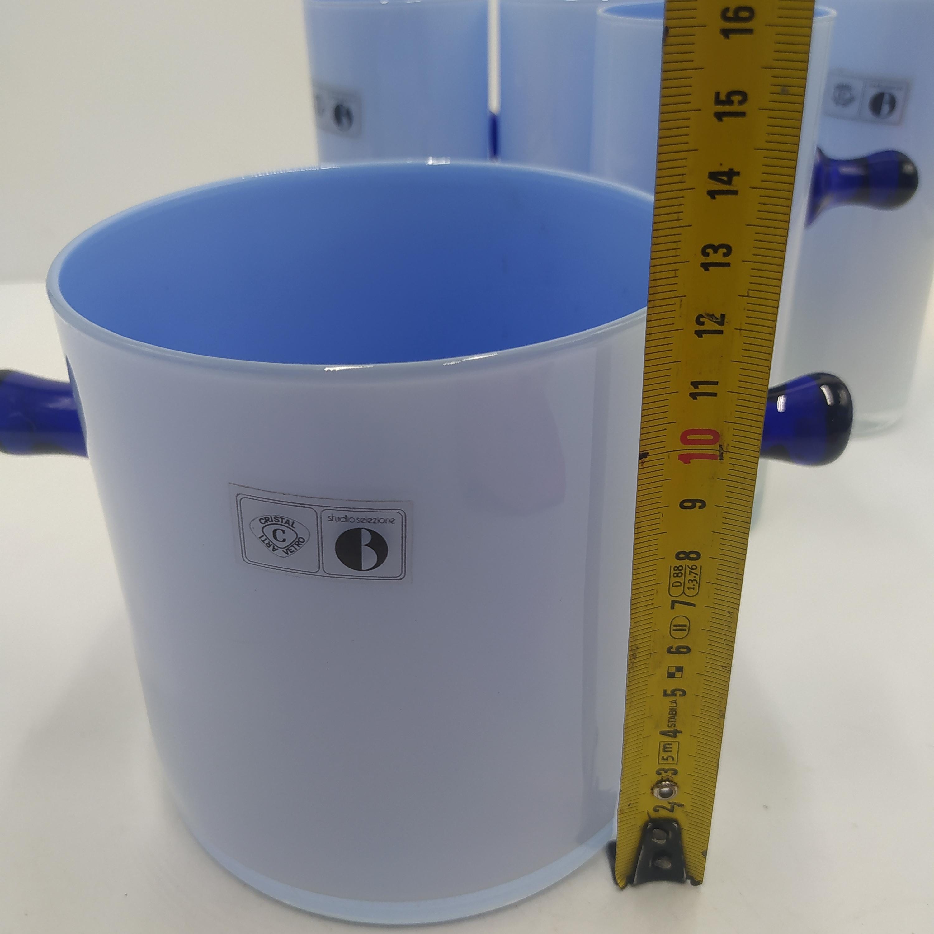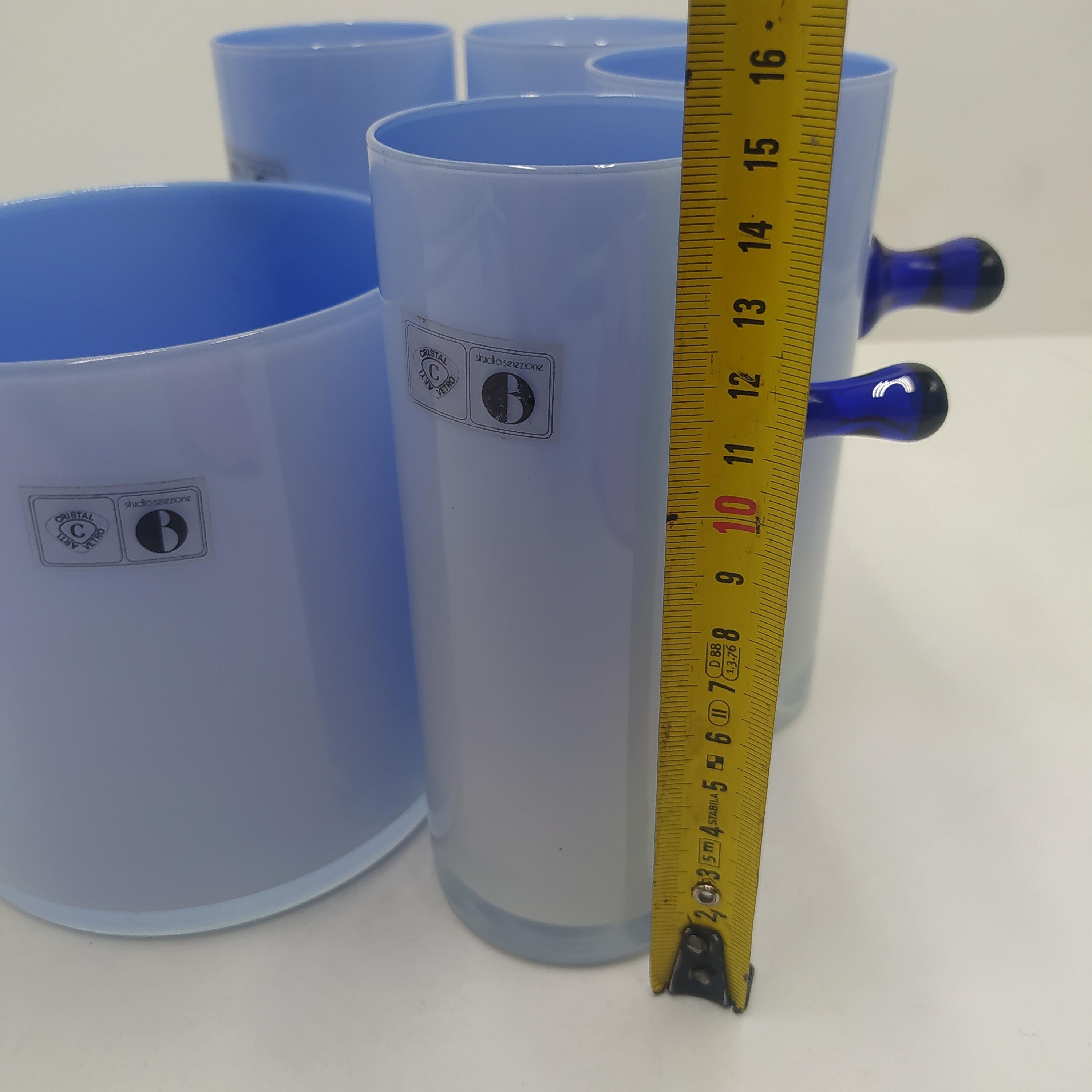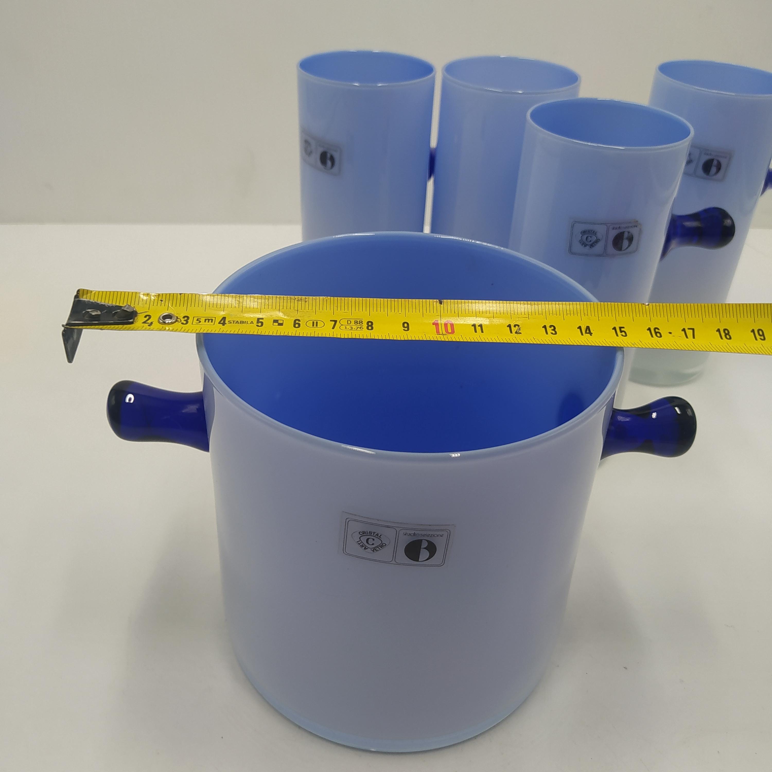 Set of 4 glasses with handle and mug/jug with double handles in opaline blue and cobalt blue milk crystalCristal Arti Vetro - Studio Selection.Measurements as per photo.