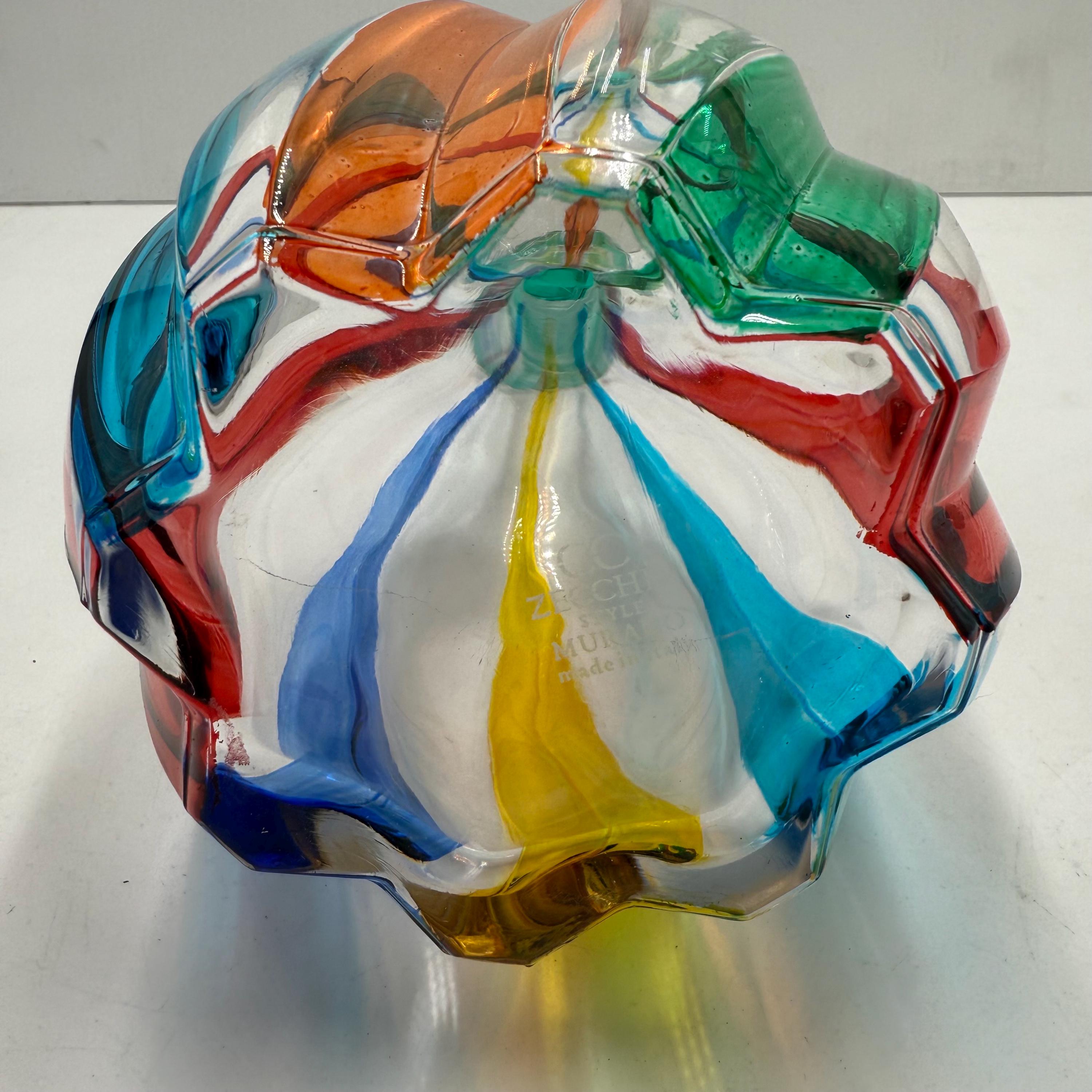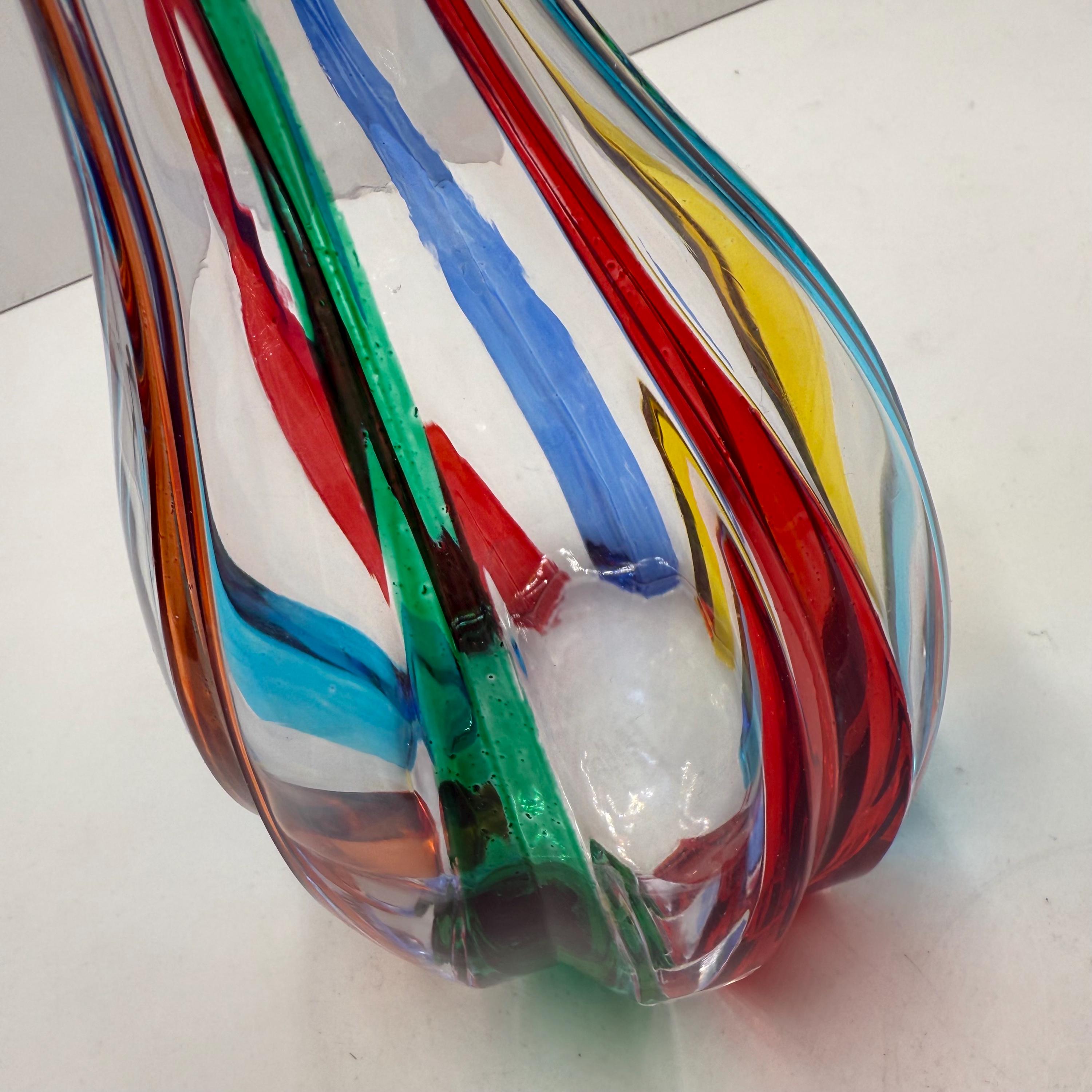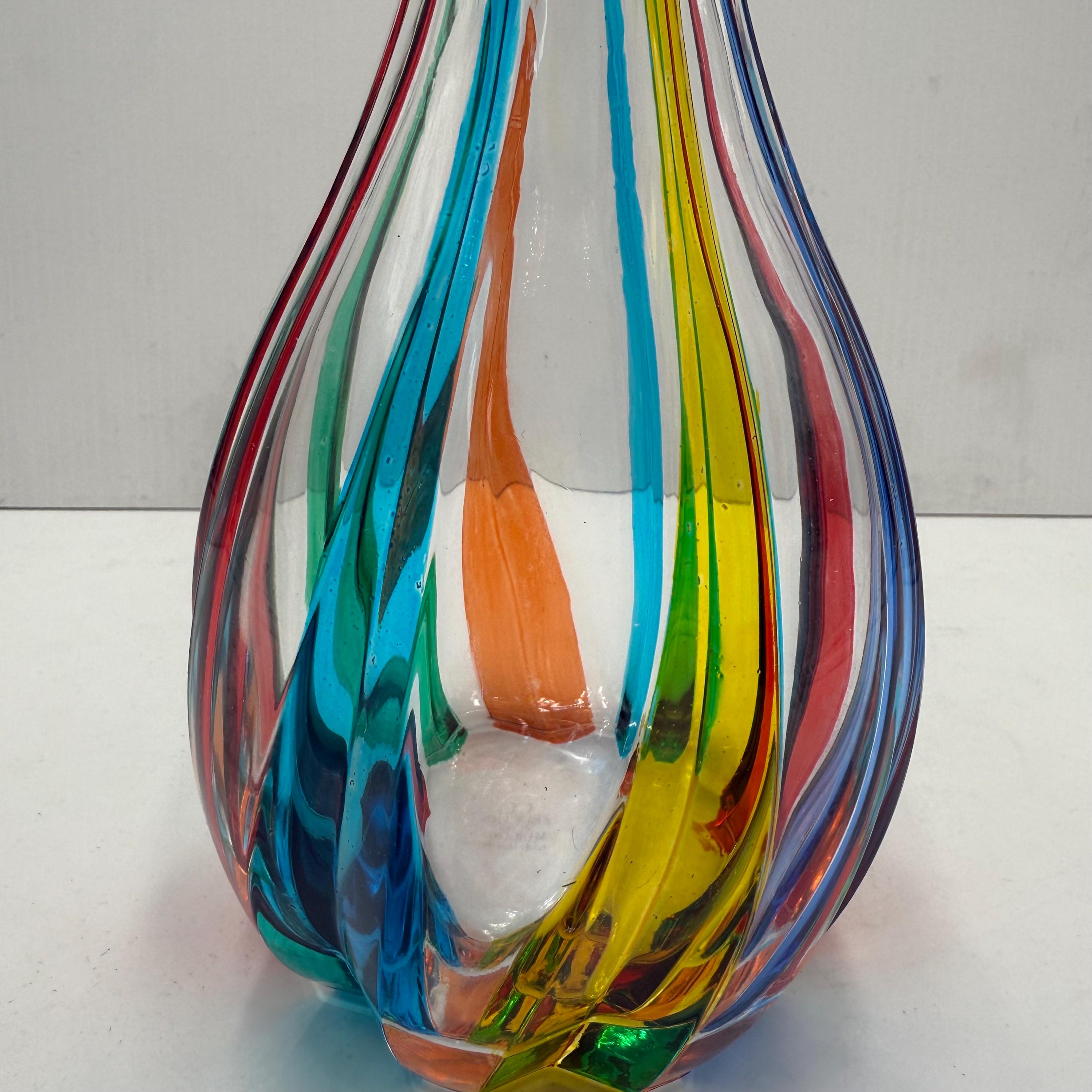 Wine bottle made in Italy and hand-decorated by the Zecchin Murano glassworks with colored enamels, perfectly following the ancient technique of Murano decorators.The bottle measures 30 cm.Original packaging guarantee