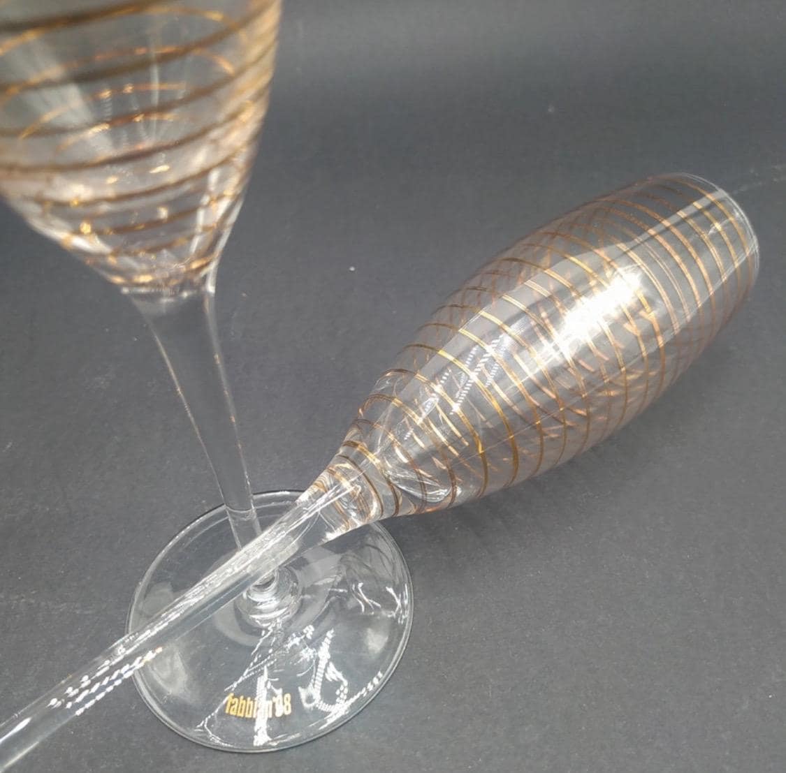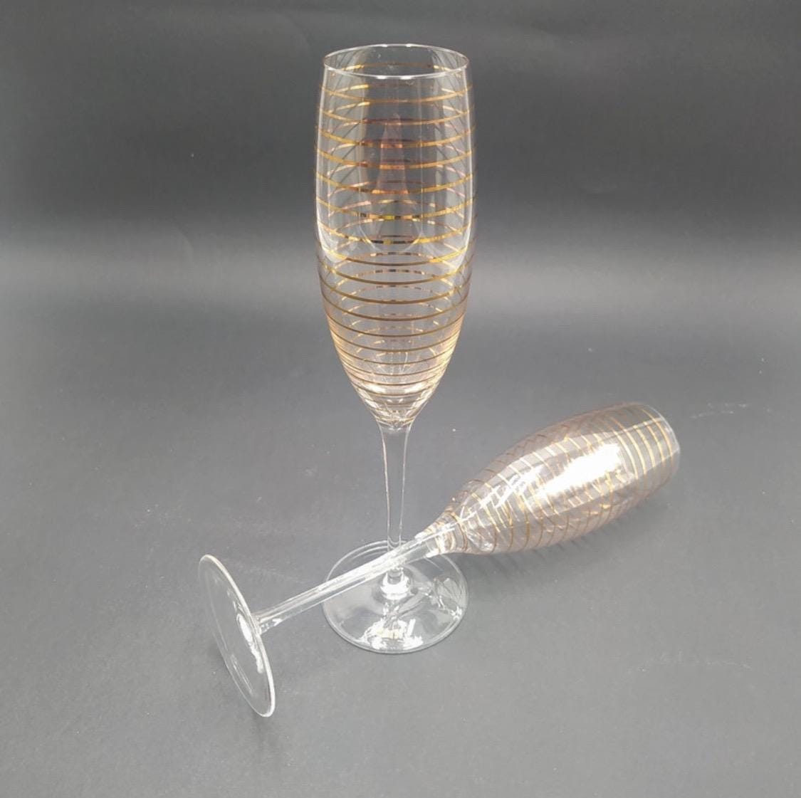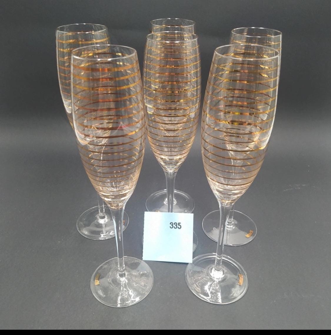 Set of 6 gold-line crystal flute glasses, Fabbian 98 brandMeasurements as per photo.