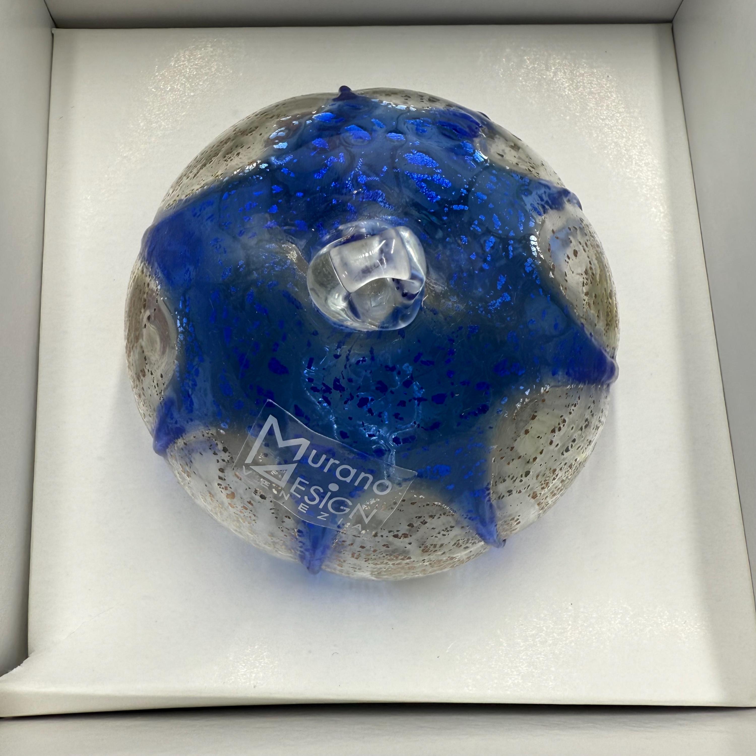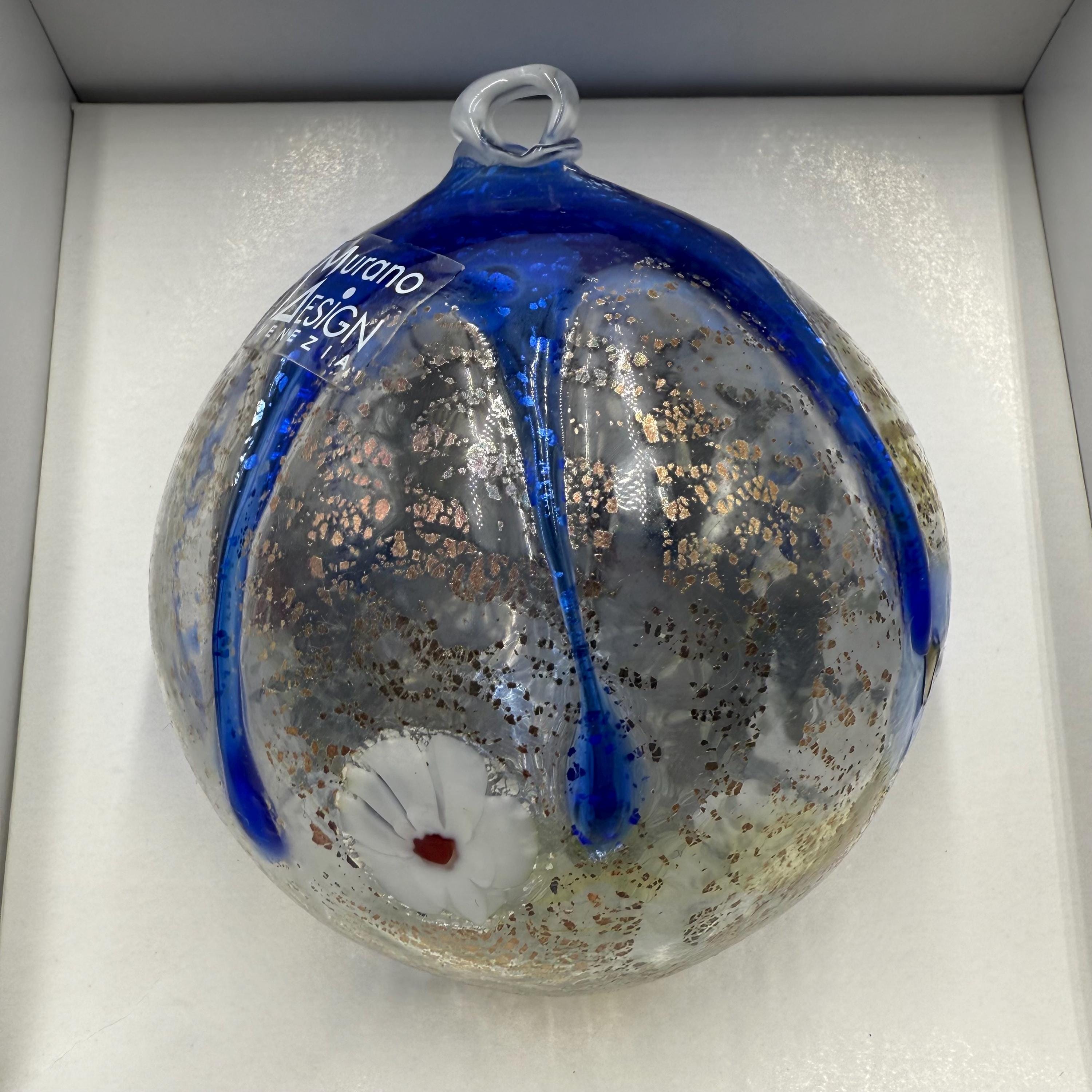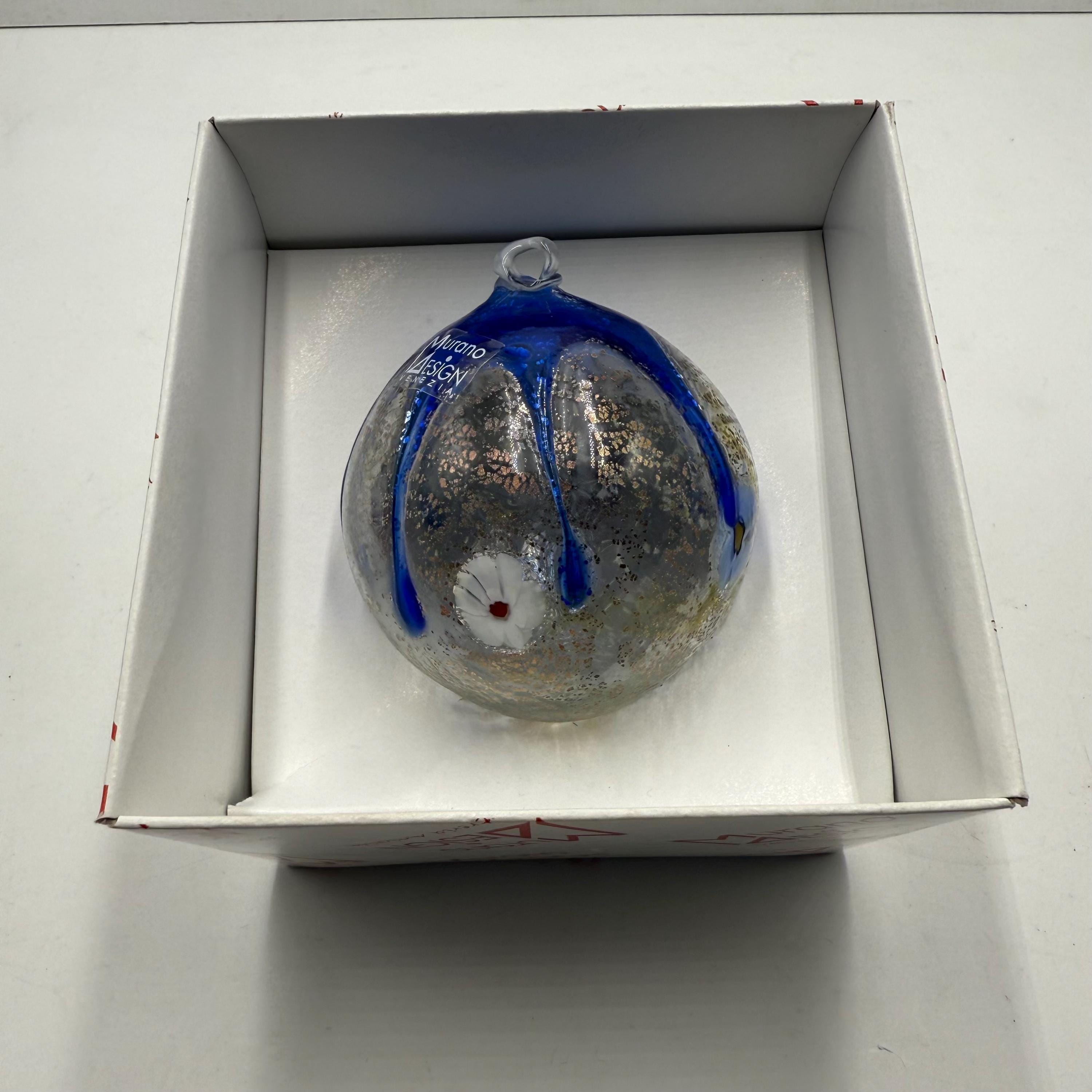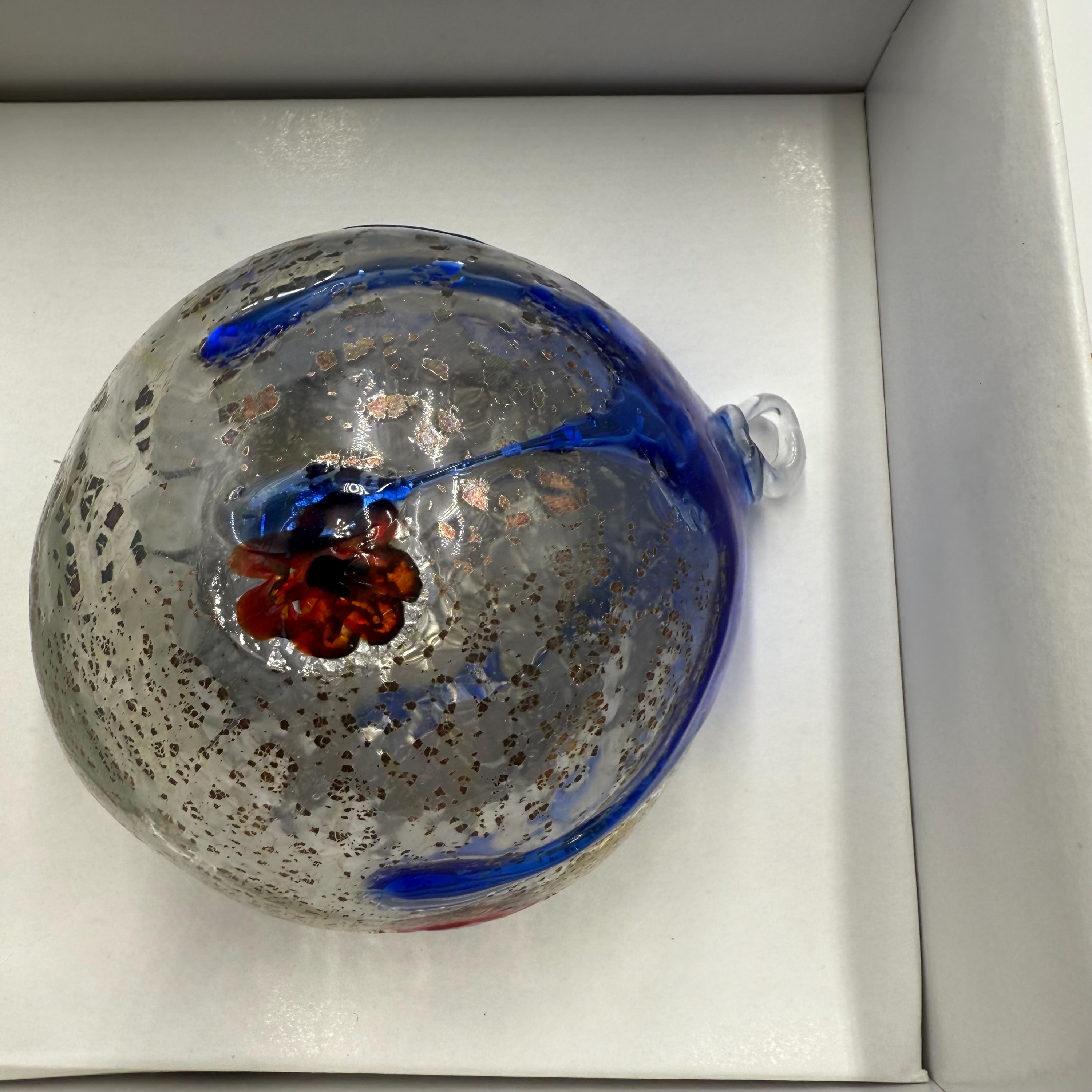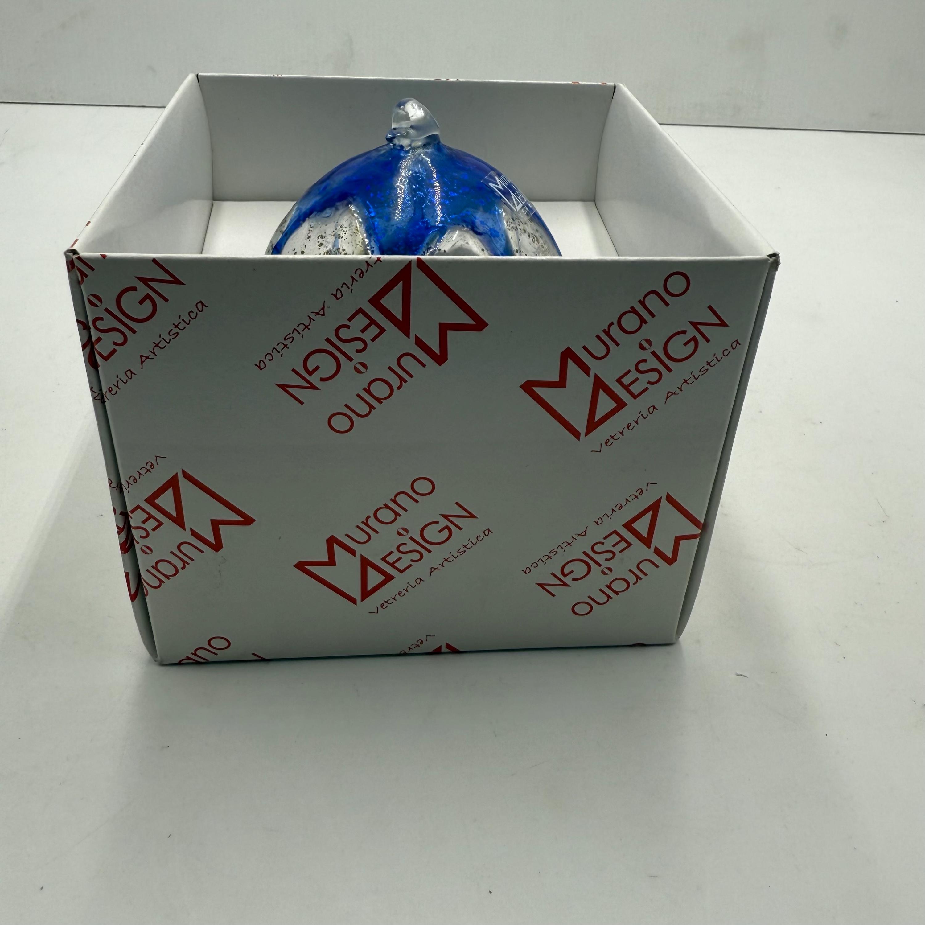 Beautiful Christmas tree ball signed Murano Digner in its original boxmeasurements in photo