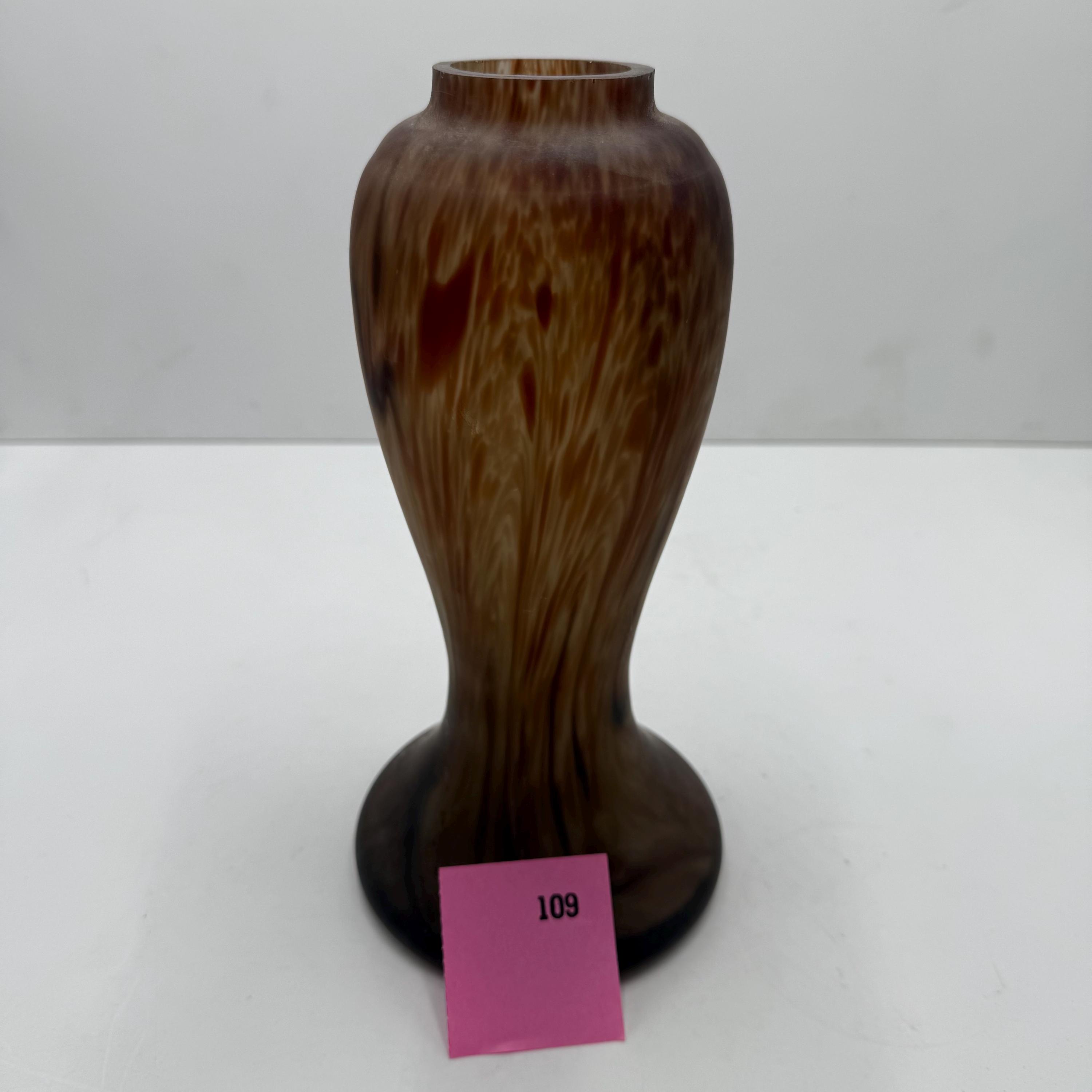 Vintage 1990s Murano glass vase, brown in color, from the Mazzuccato Murano glassworks.Measurements and designer in photos