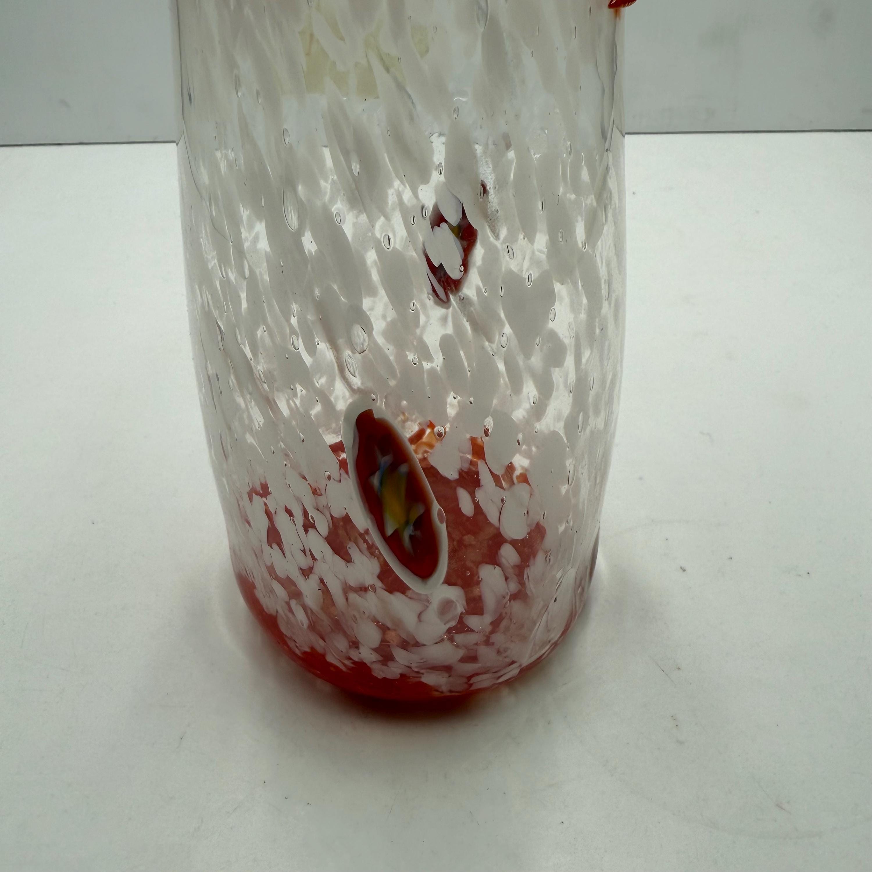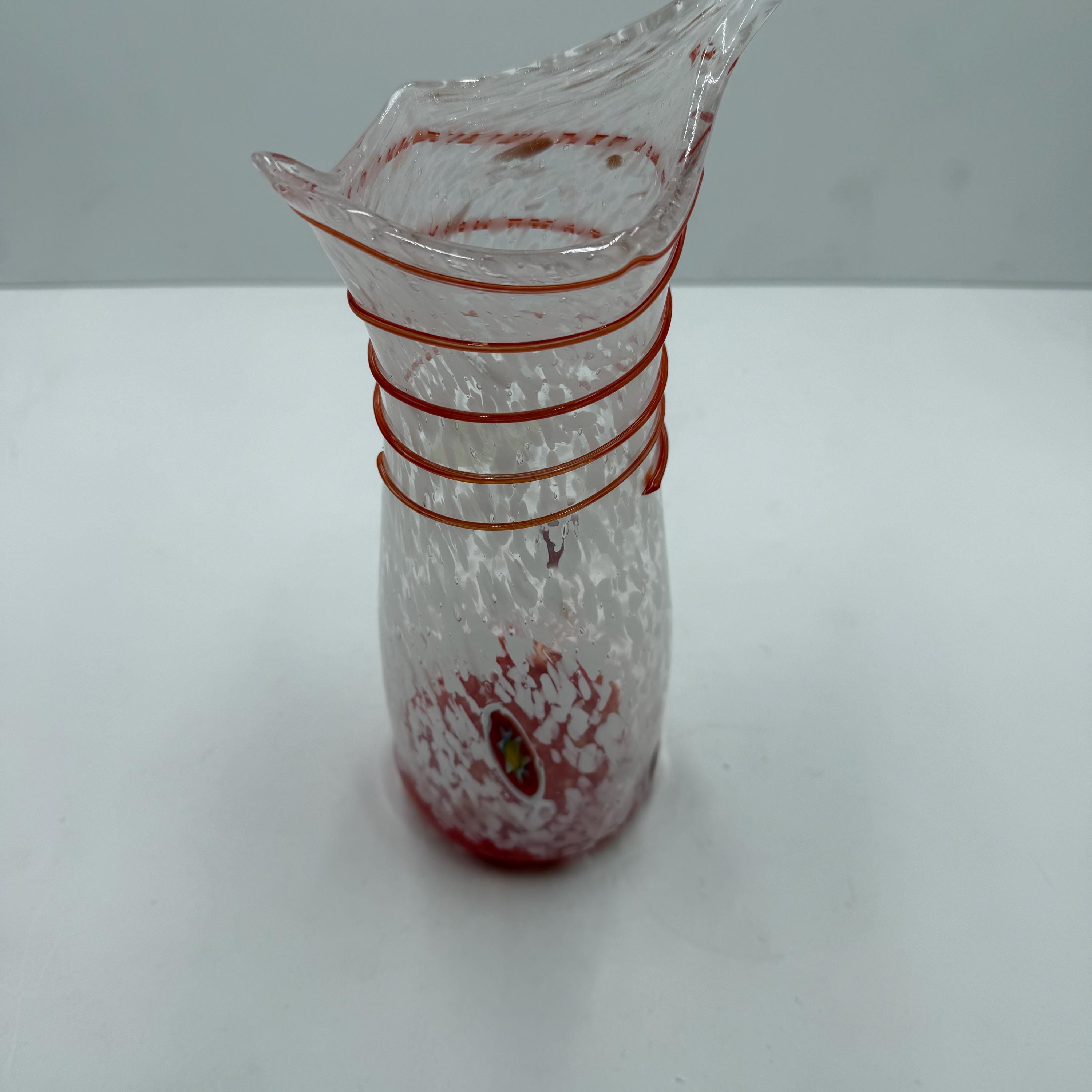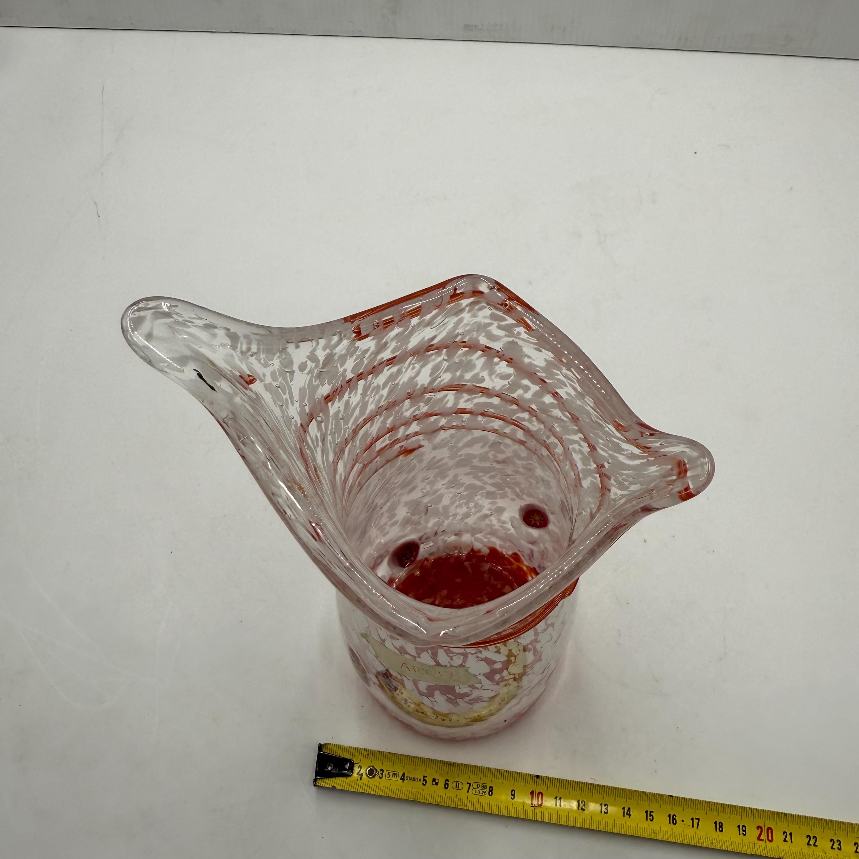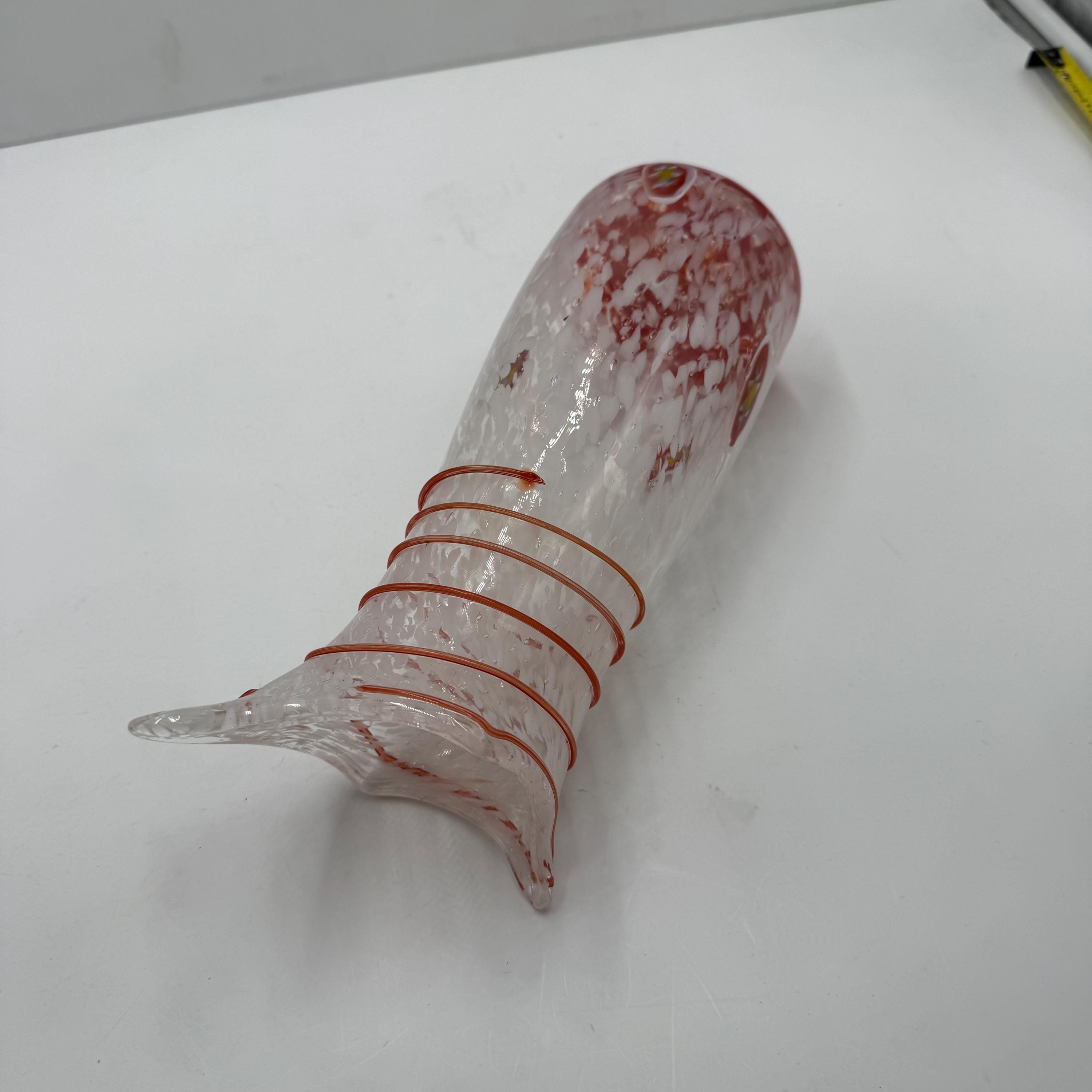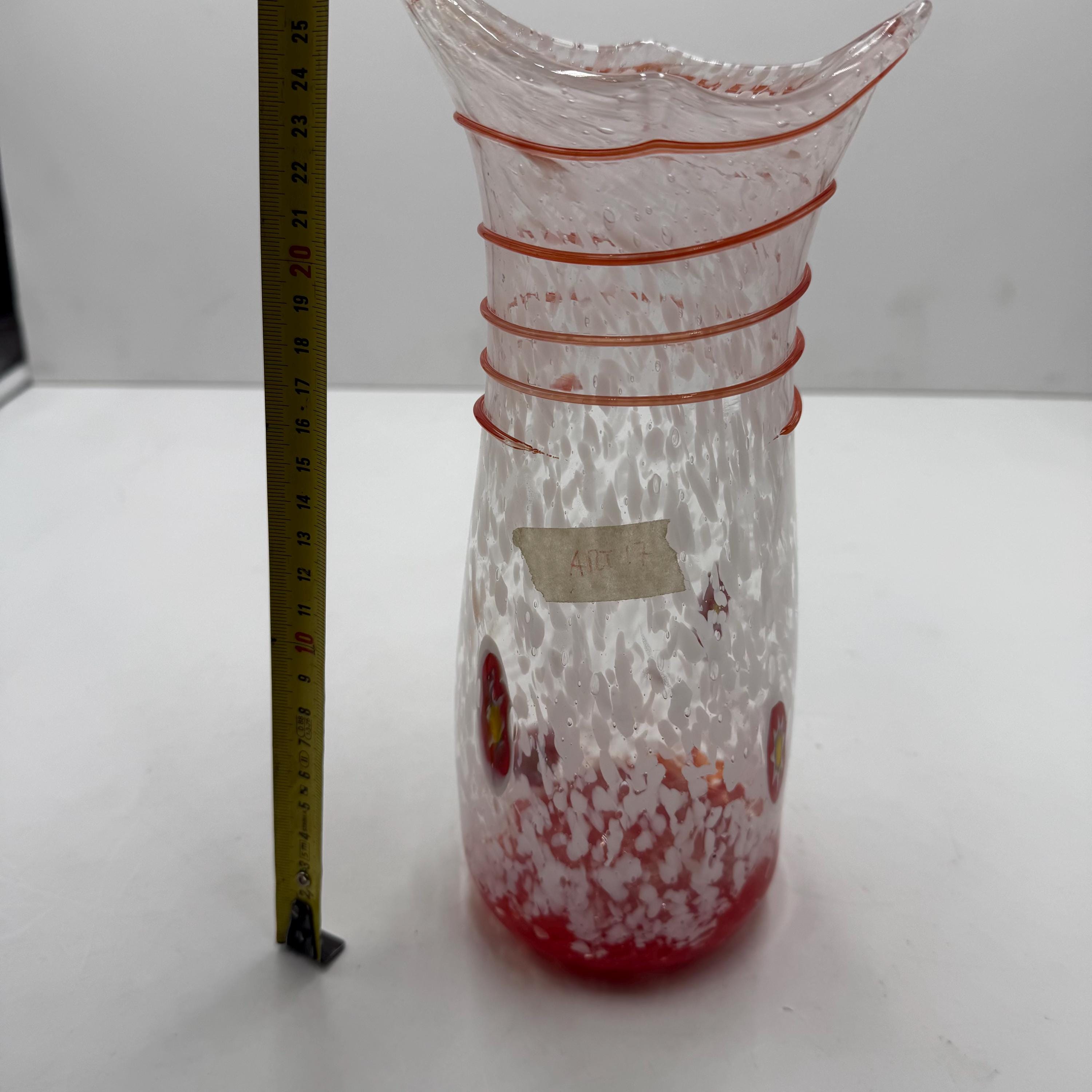 Vintage vase produced between the 80s and 90s in Murano glass, white and red colour, from the Santa Chiara Murano furnace.Certificate of originMeasurements and designer in photos