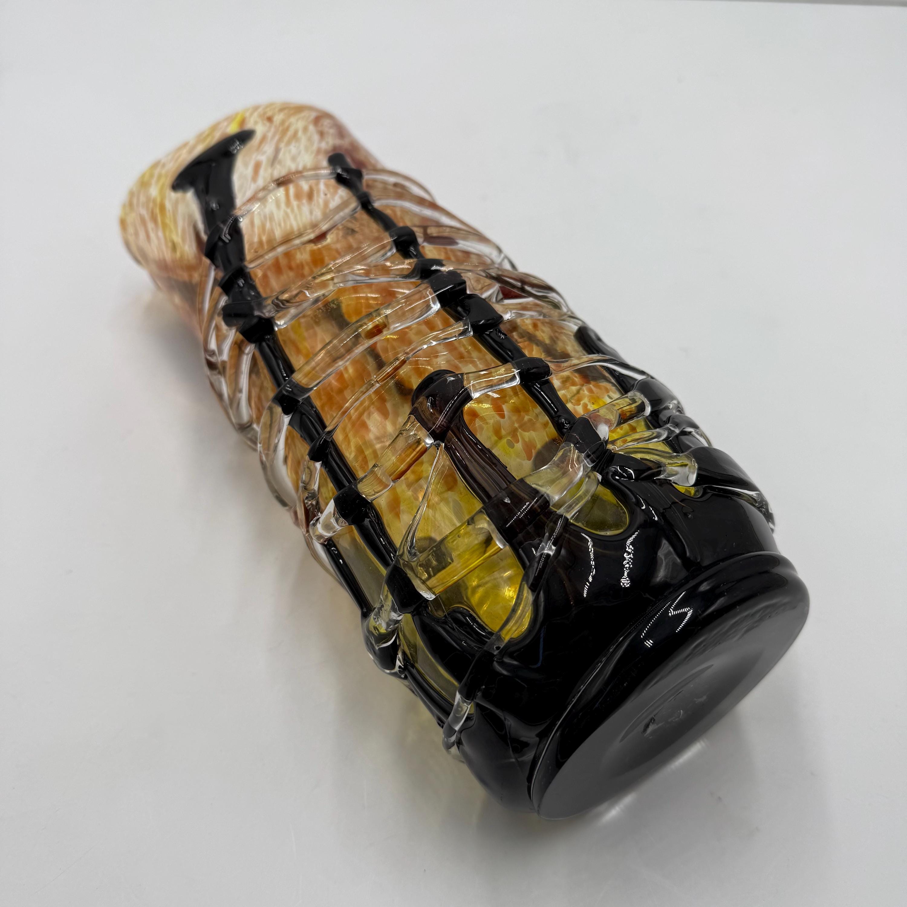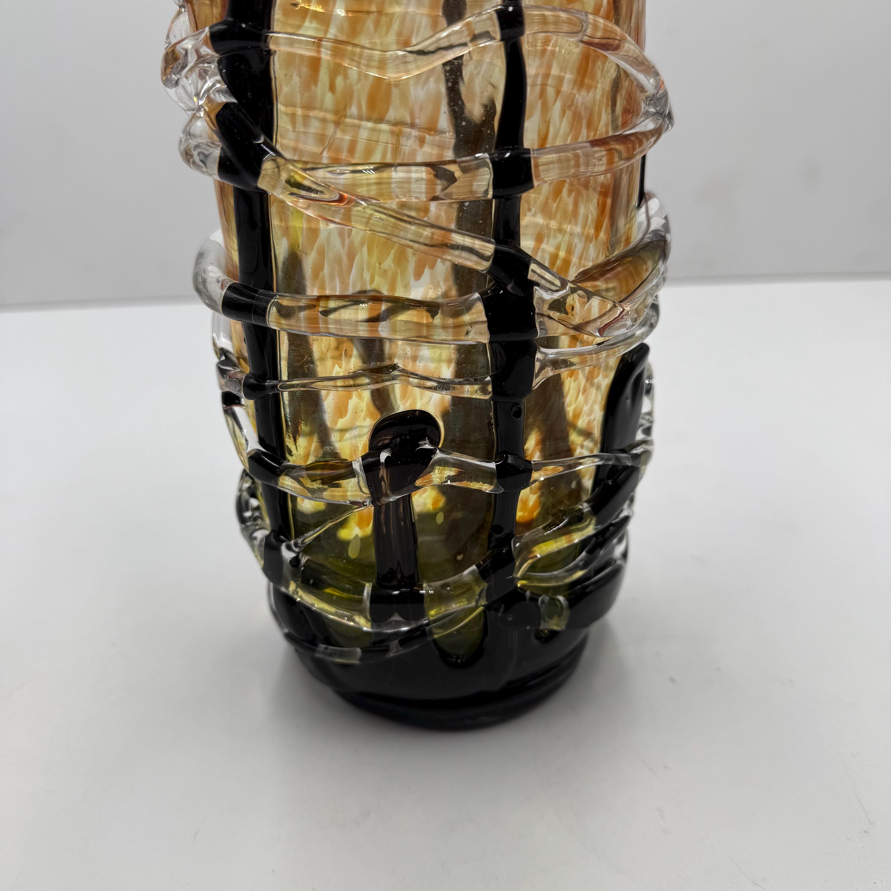 Vintage vase, typical production from the 1960s--1980s, in amber Murano glass with brown streaks, from the Santa Chiara Murano furnace - unique designer.Certificate of originMeasurements and designer in photos