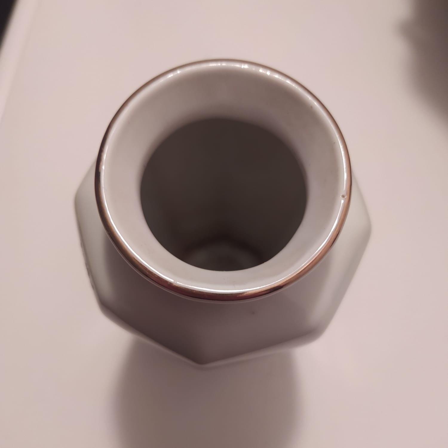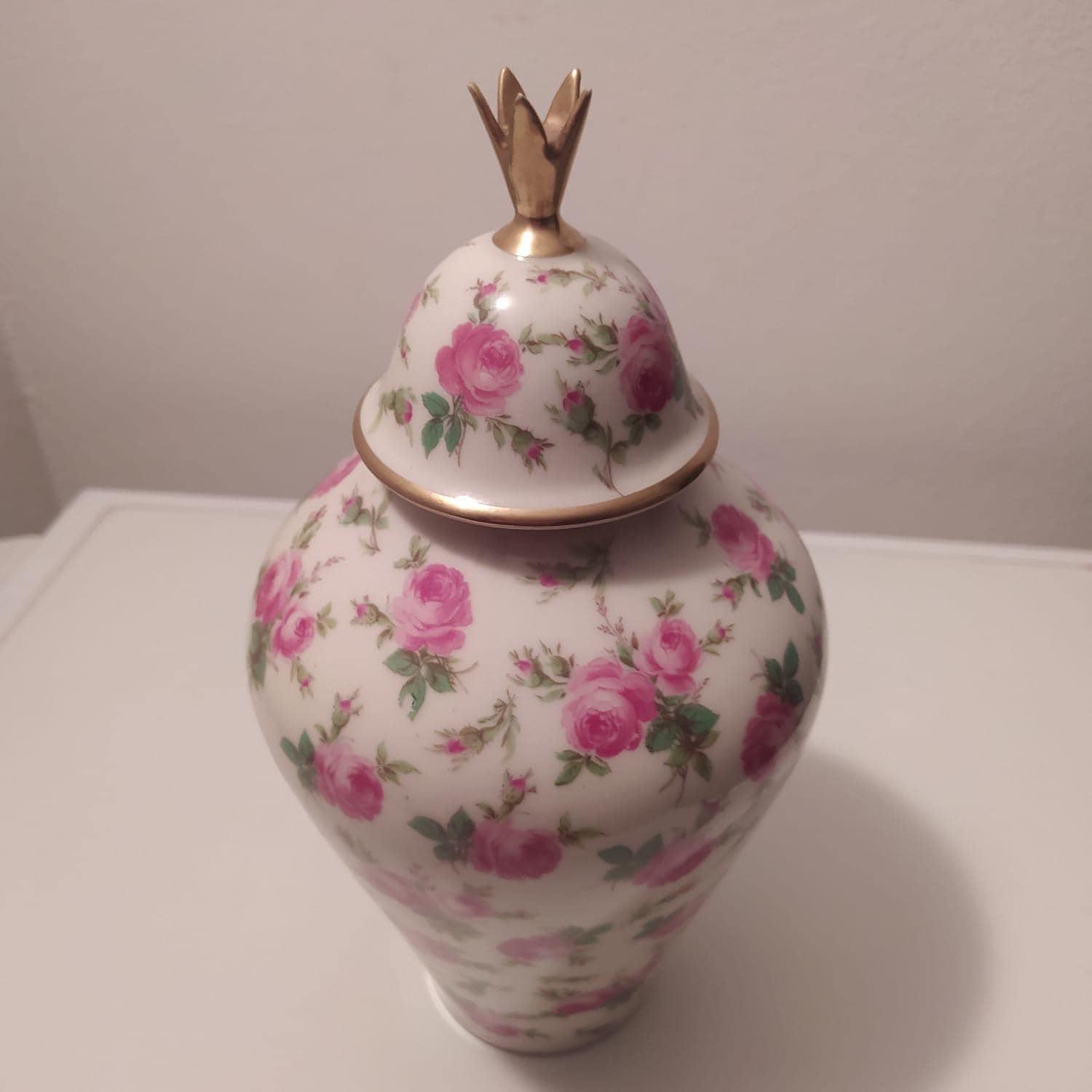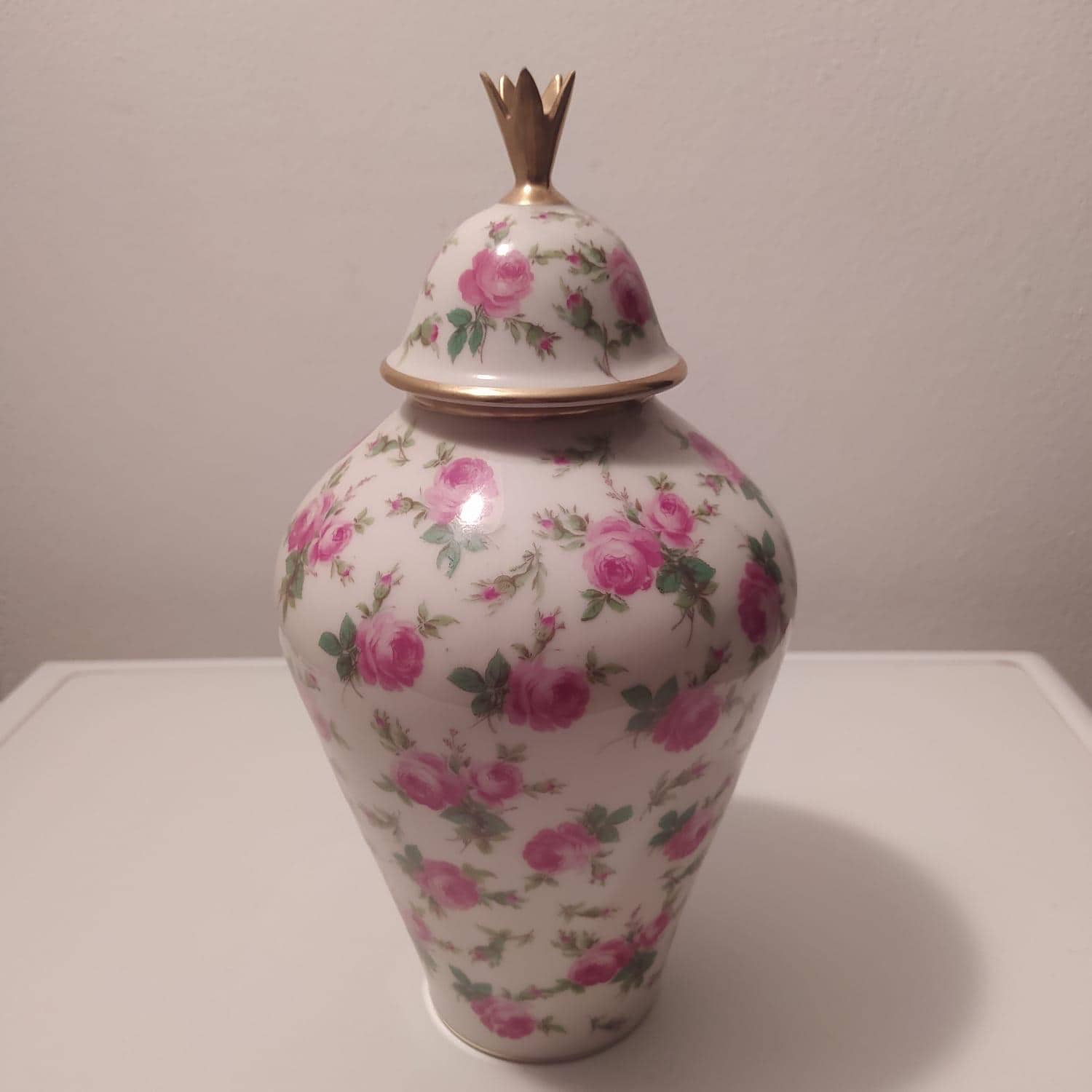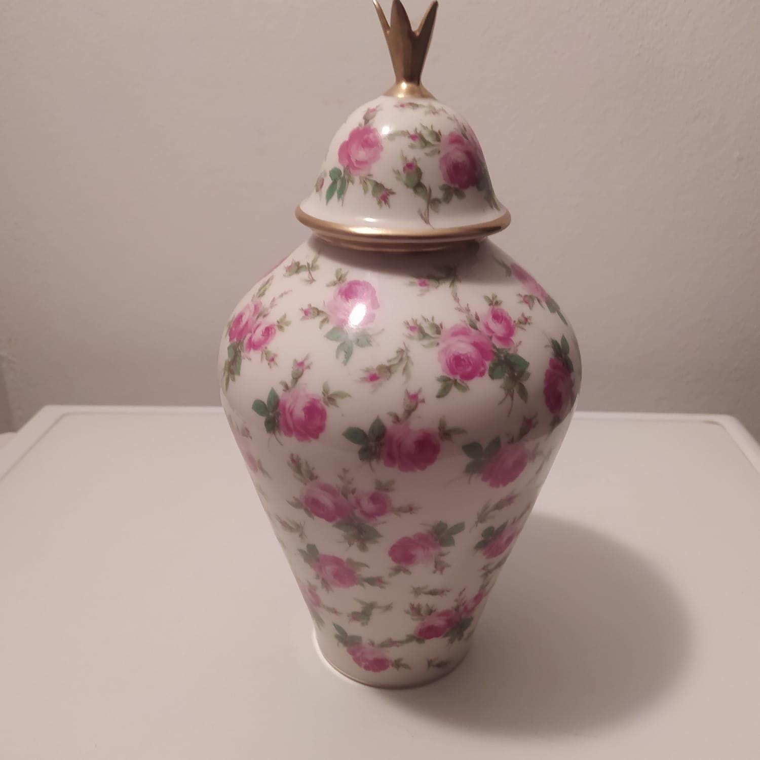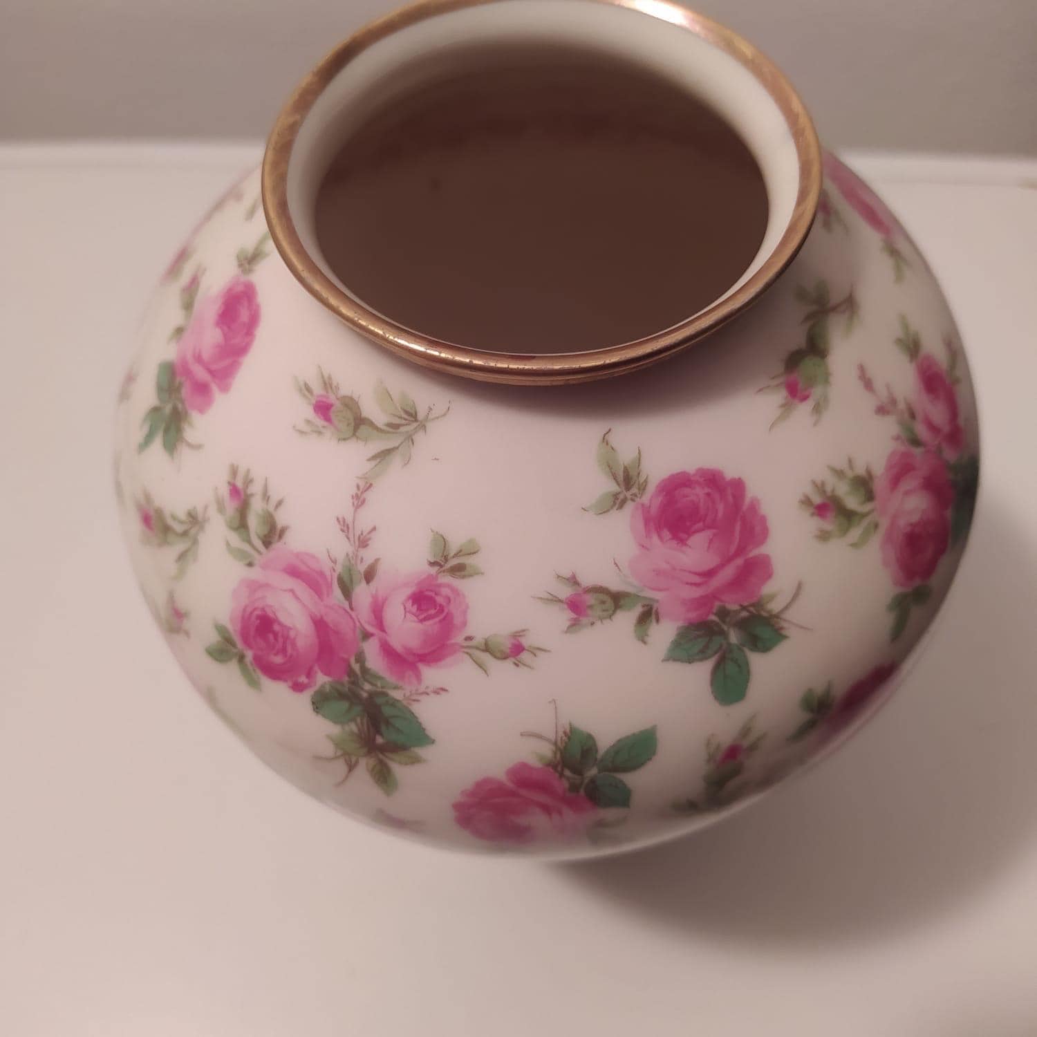 Excellent antique Bavarian ceramic vase dating back to the early 1900s with floral decoration and gold details.Measurements: diameter 15, height 26