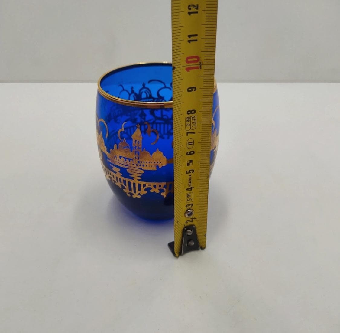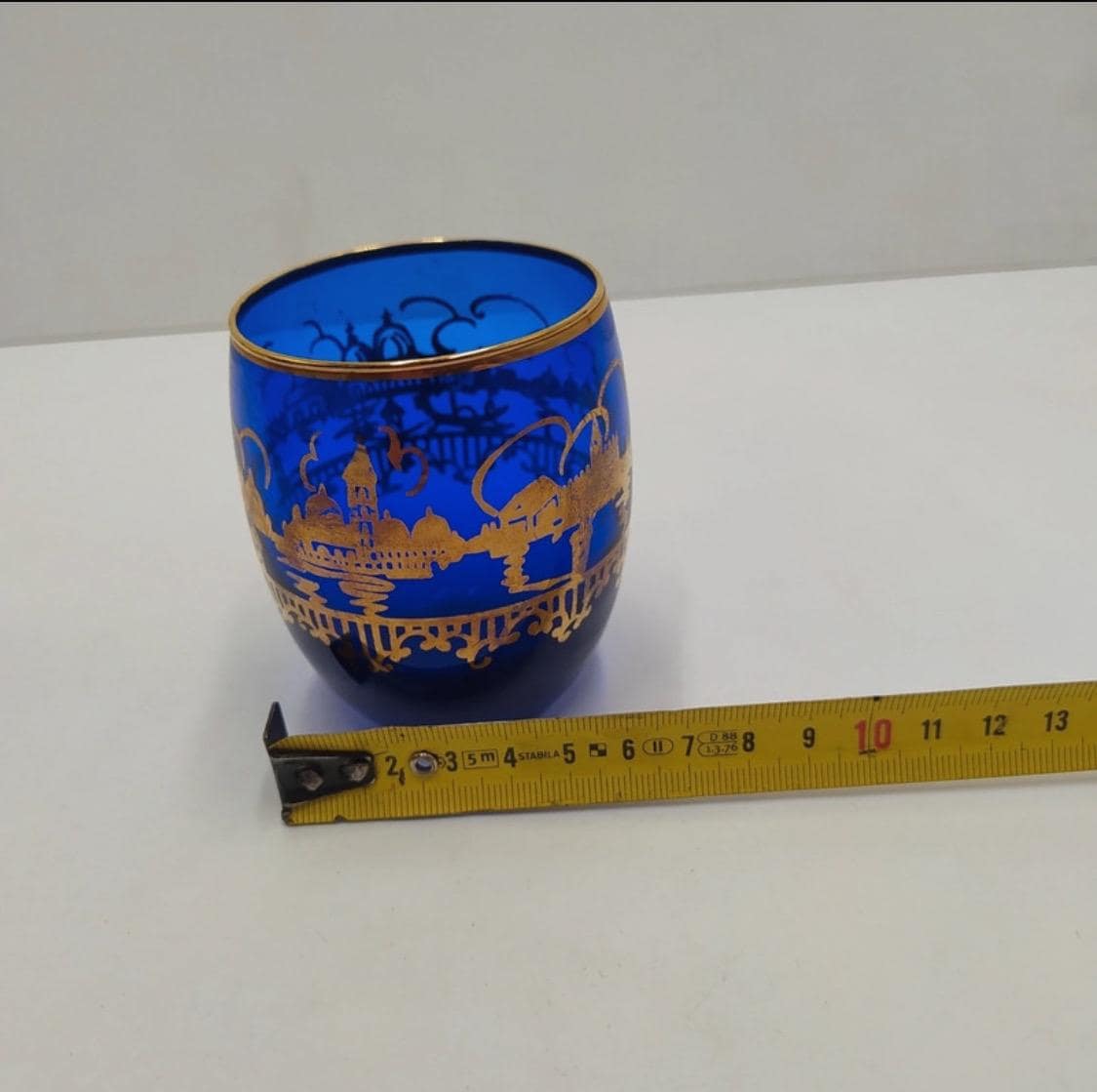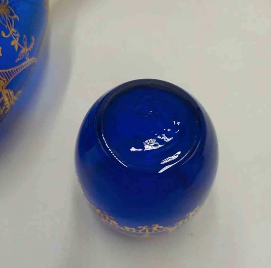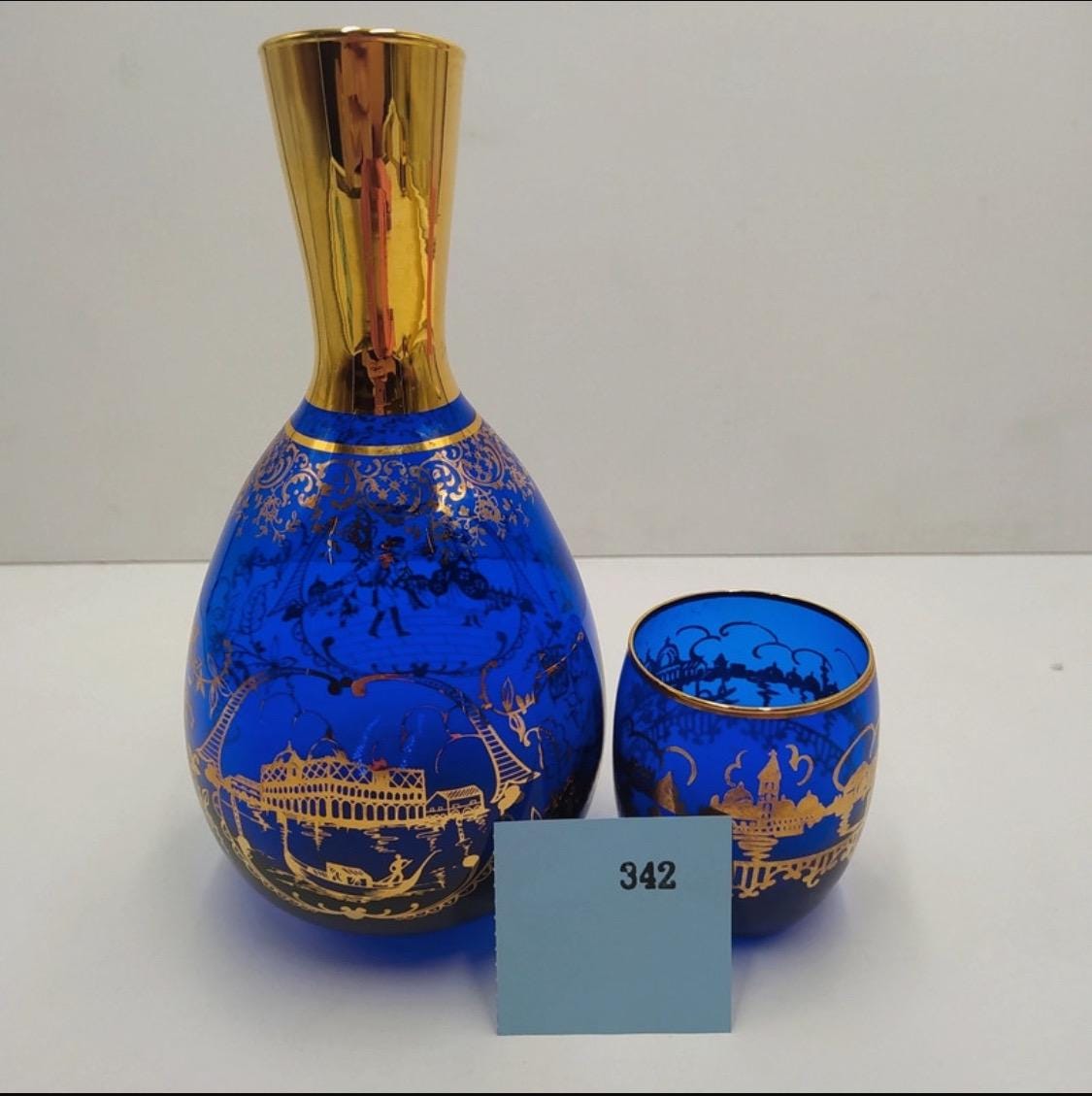 Murano glass bottle with 18kt gold leaf decoration from the Santa Chiara Murano furnace, cobalt blue and gold color.Certificate of origin.Measurements and designer and in photos.