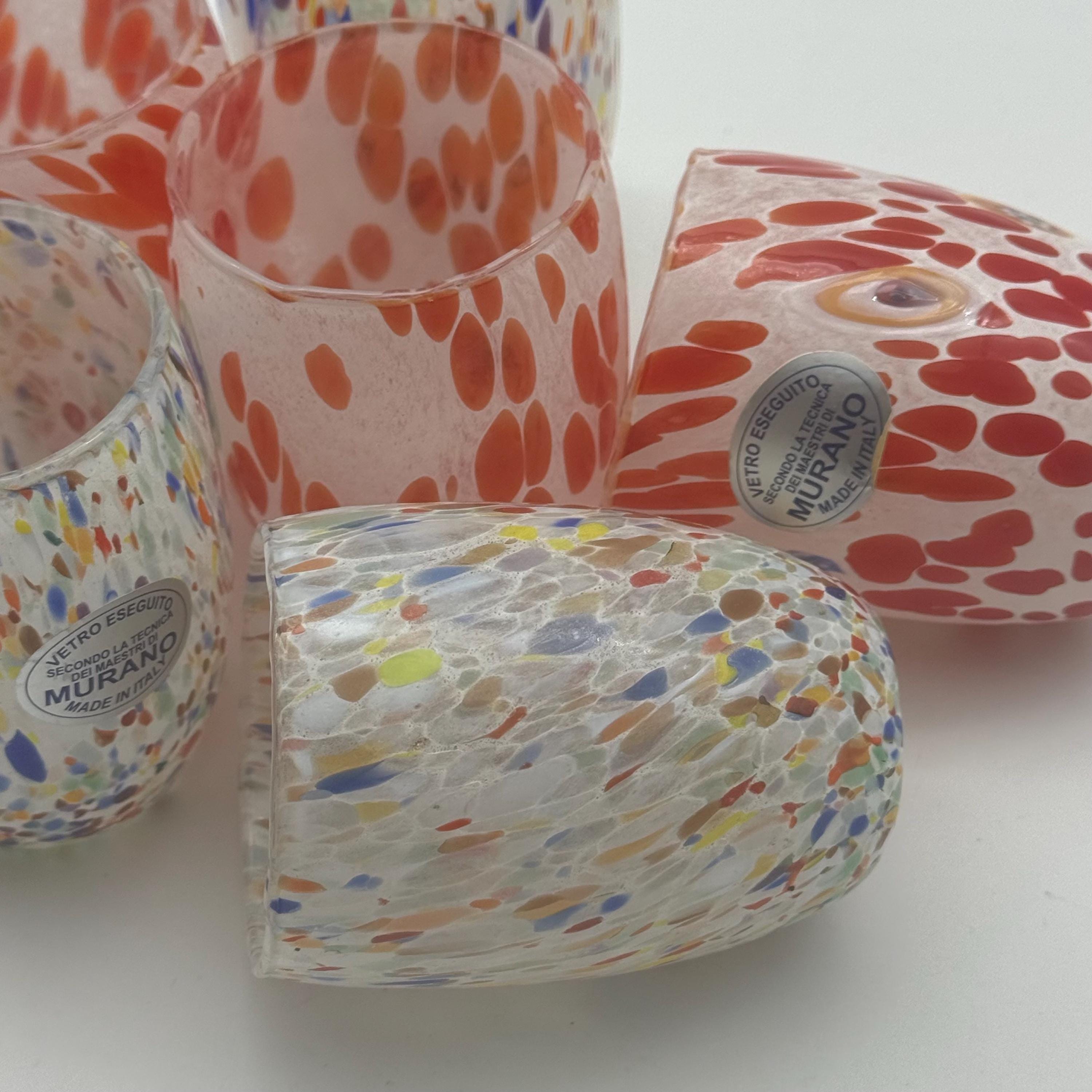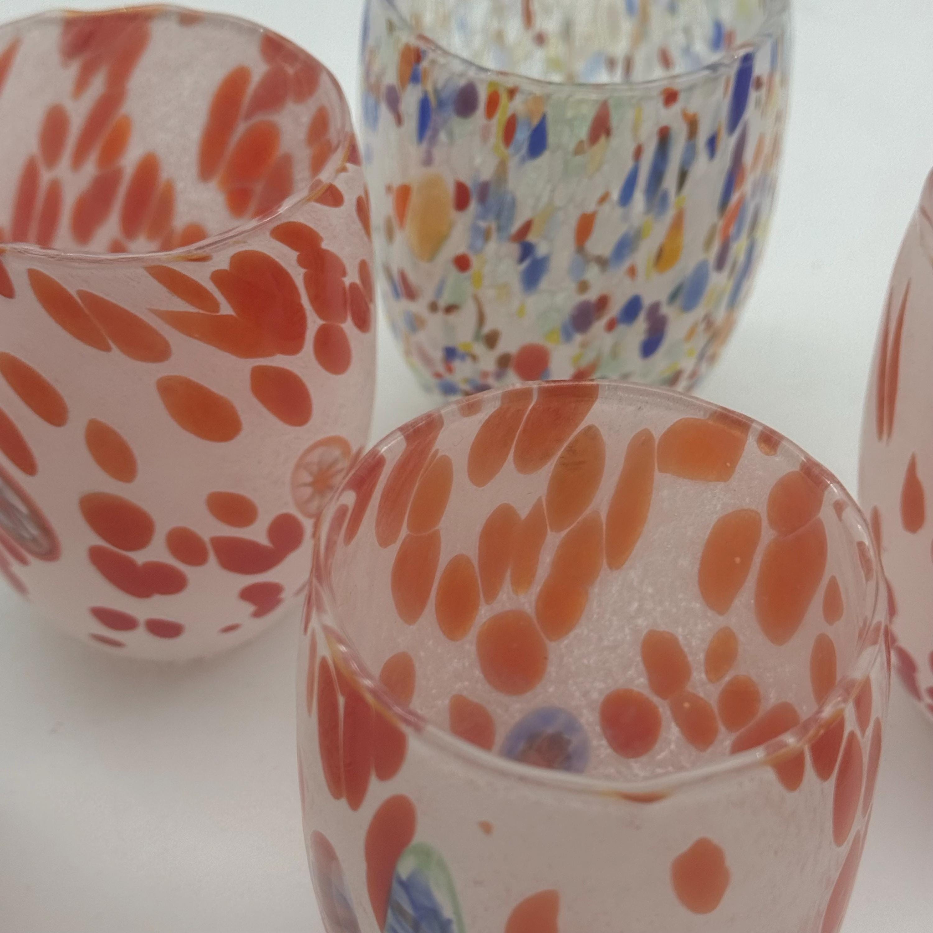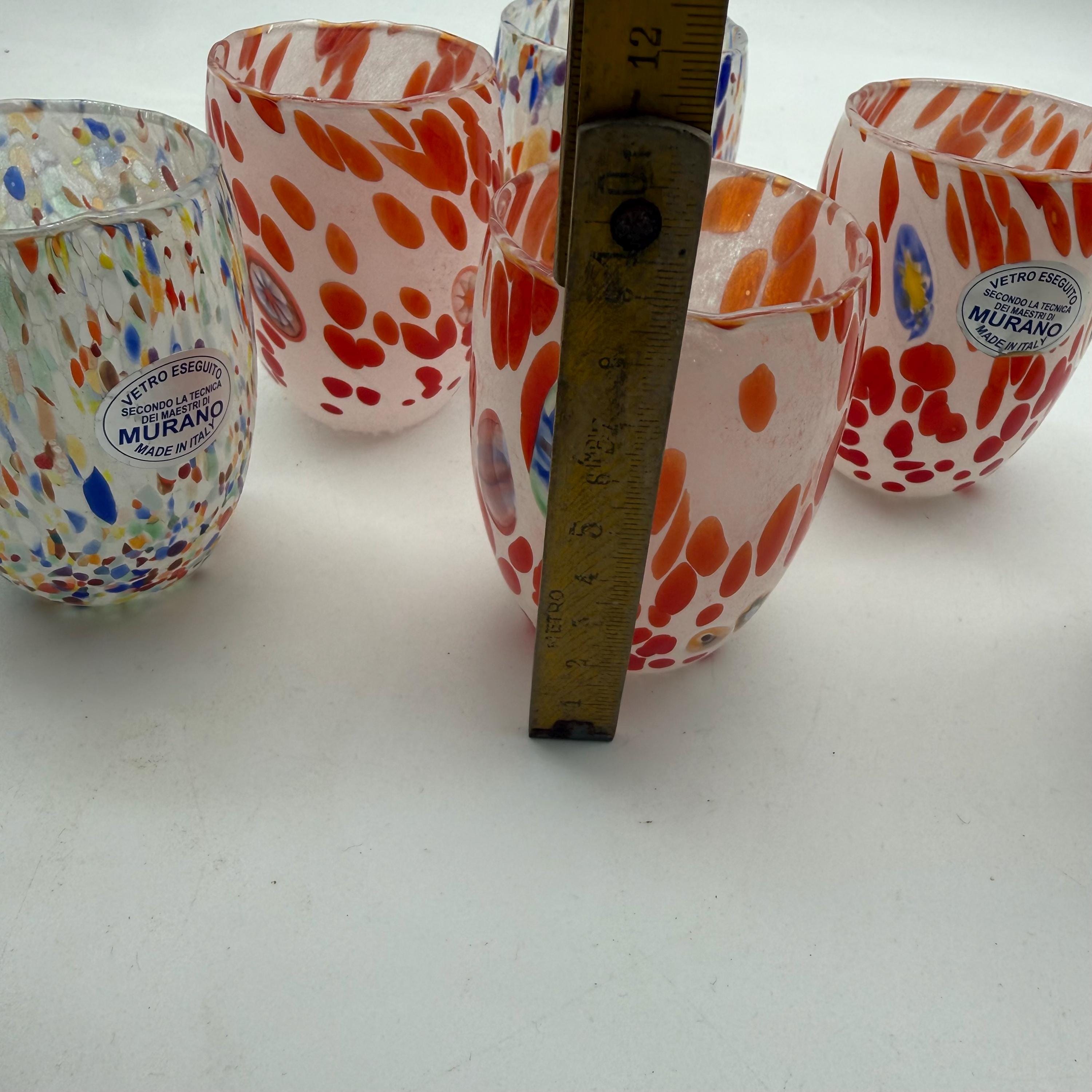 Set of 6 Murano glass liqueur glasses, color as shown in the photo.Measurements: height 7 cm, diameter 5 cm, capacity approximately 125 cl