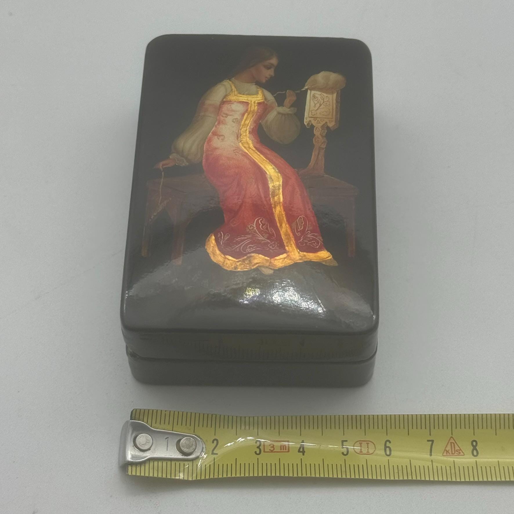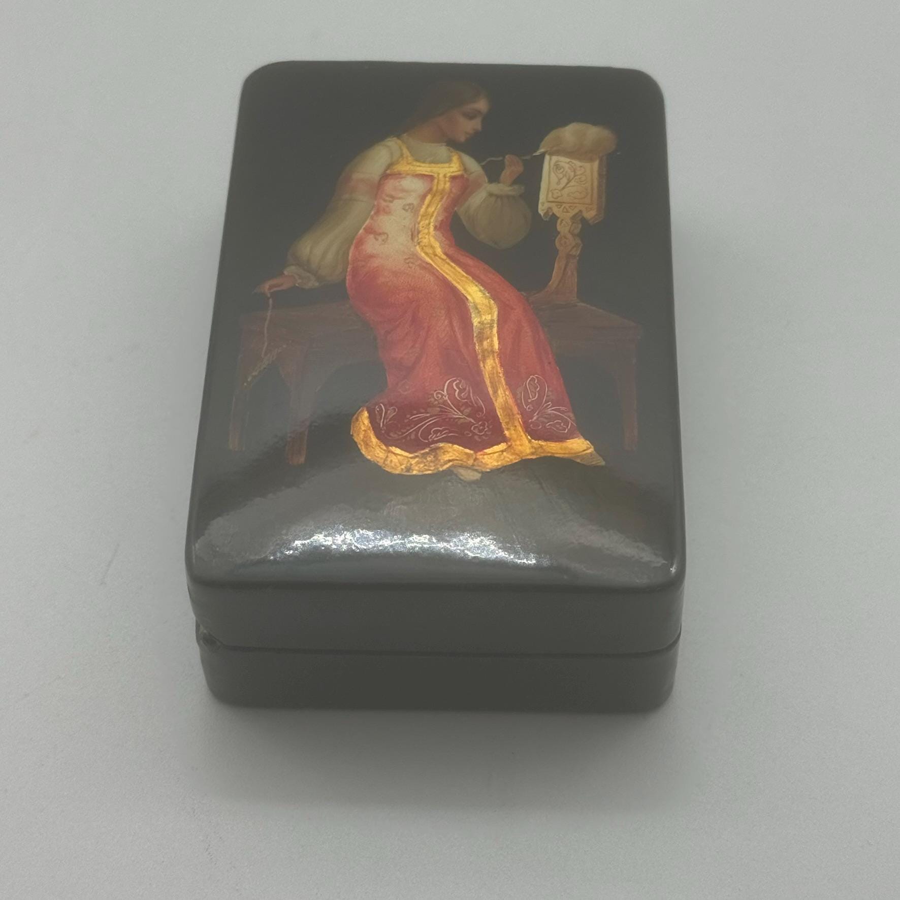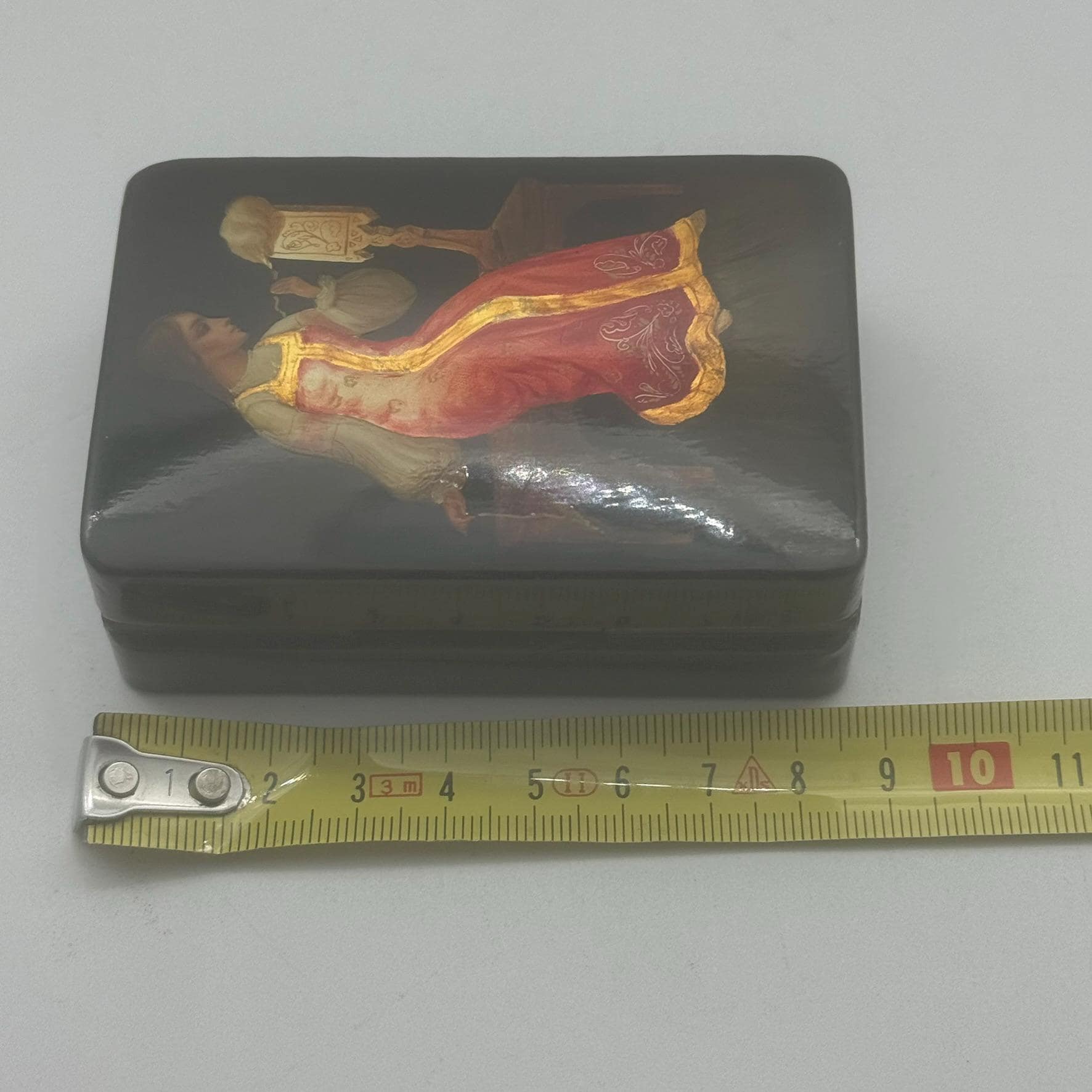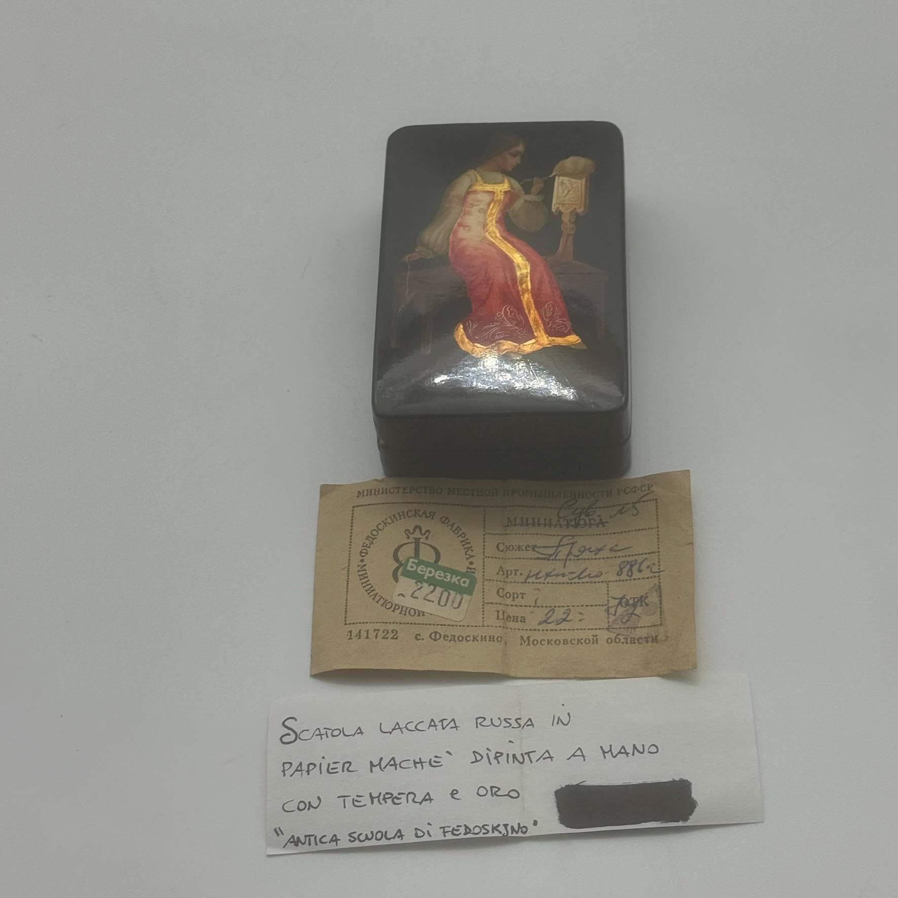 Ancient and precious Papier Mâché box painted with tempera and goldtraceable back to the ancient school of FedoskjnoDetails and measurements in the photos
