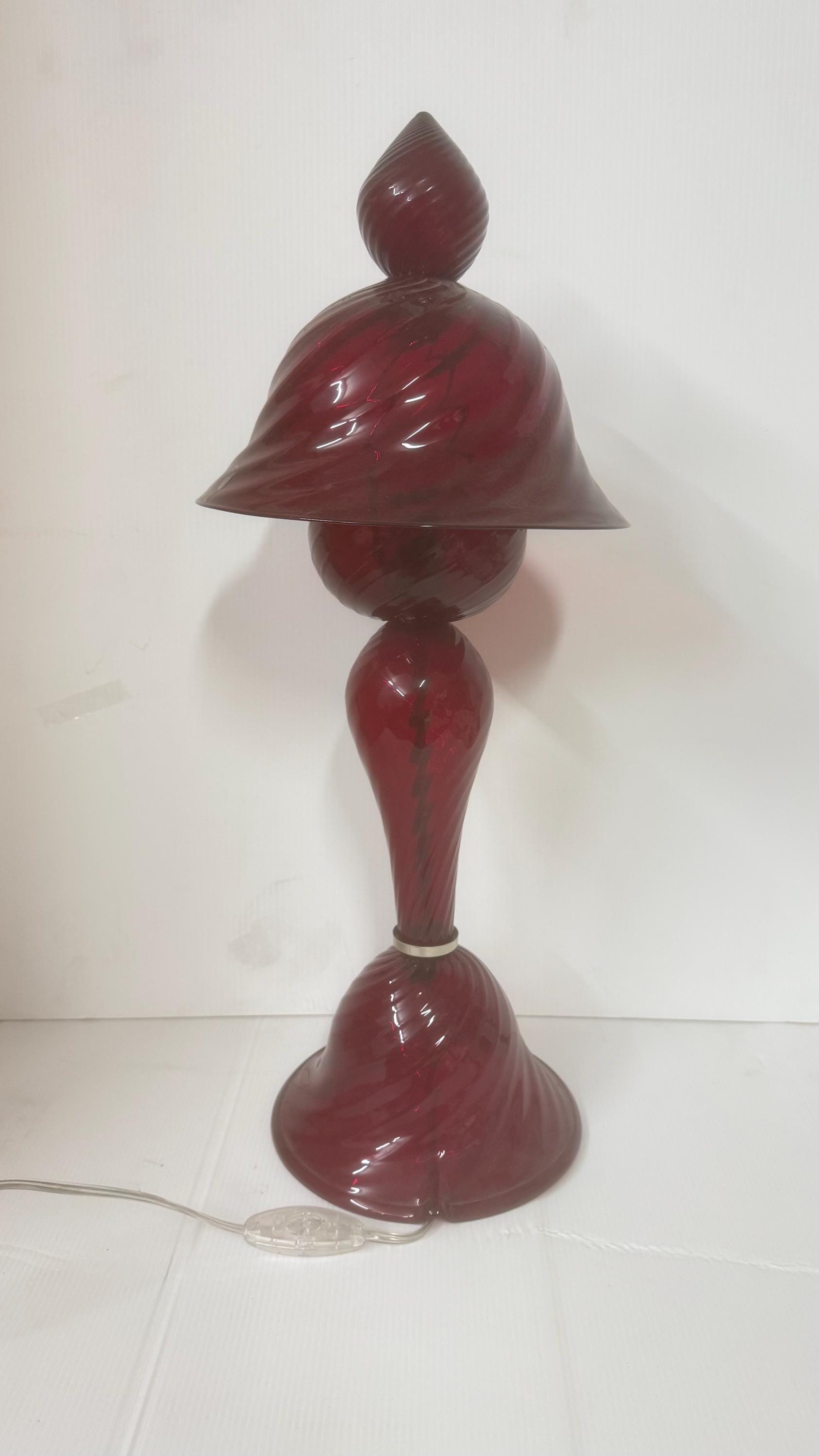 Alvise Voltolina Murano "Lumetto" table lamp. An Italian designer dating back to the 1970s.Ruby red color55 cm highdiameter 25 cm